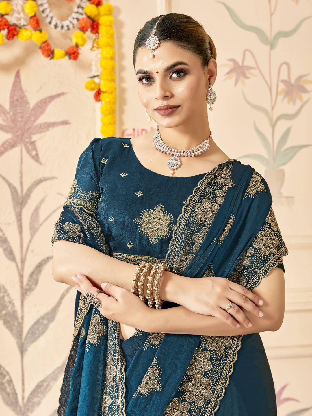 Blue color Saree in Tissue fabric with Embroidered, Stone, Swarovski, Zari work