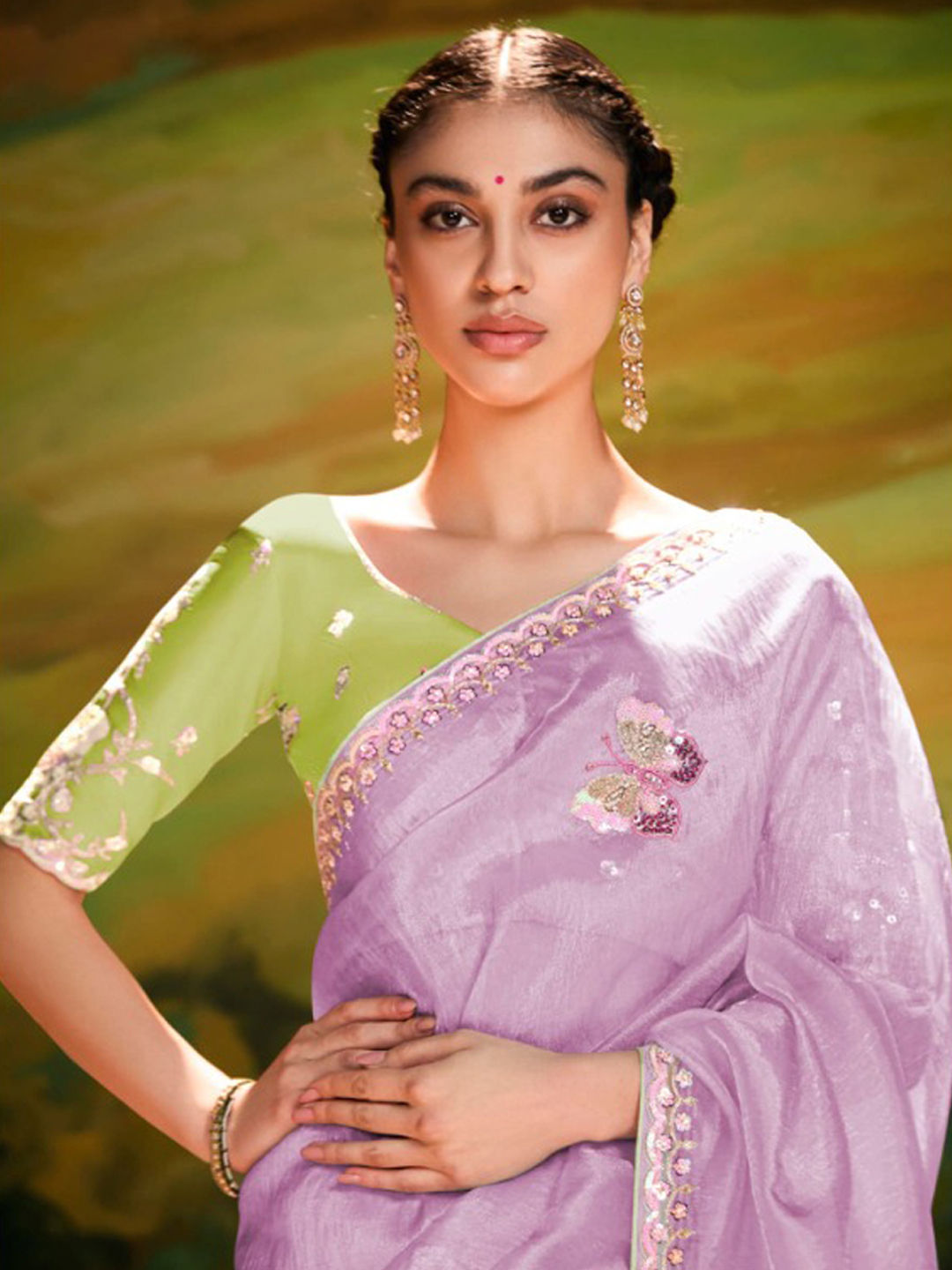 Pink and Majenta color Saree in Tissue fabric with Embroidered, Sequence, Thread work