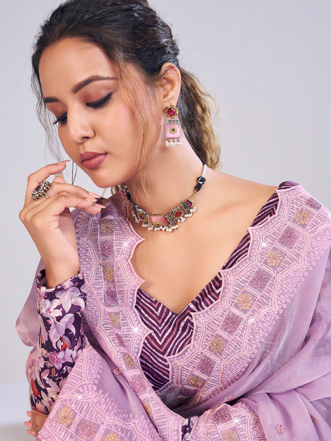 Purple and Violet color Saree in Tissue fabric with Embroidered, Resham, Sequence, Thread work