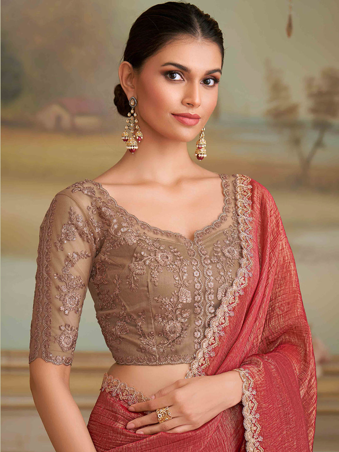 Georgette Reception Saree in Pink and Majenta with Embroidered work