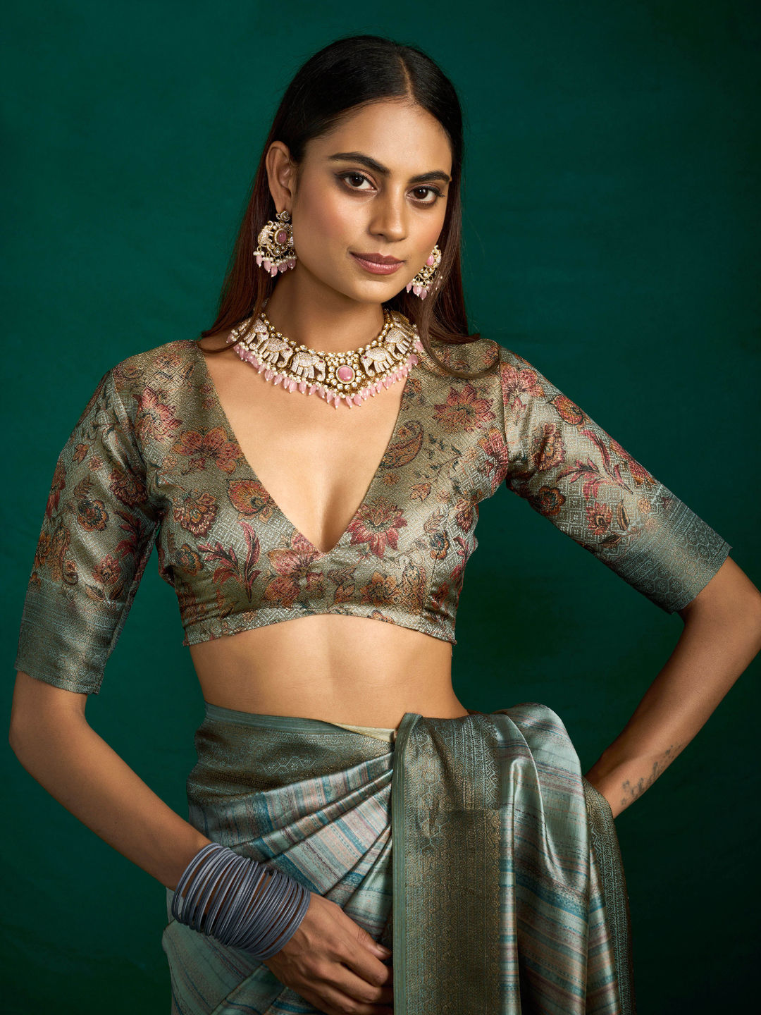 Tussar Silk Festive Saree in Blue with Digital Print work