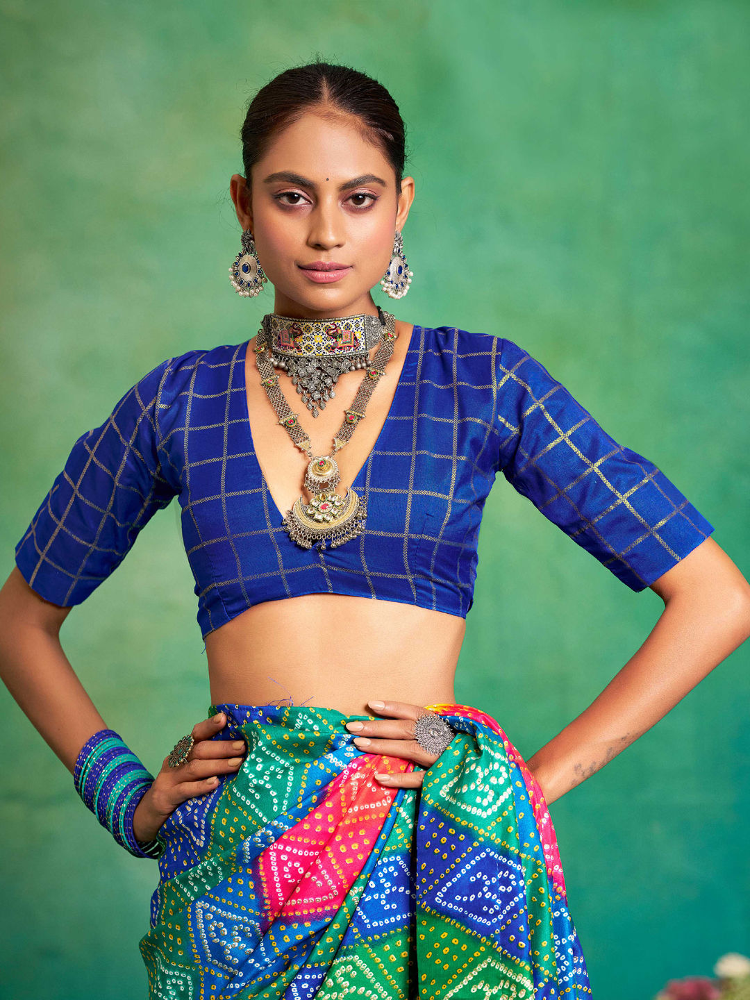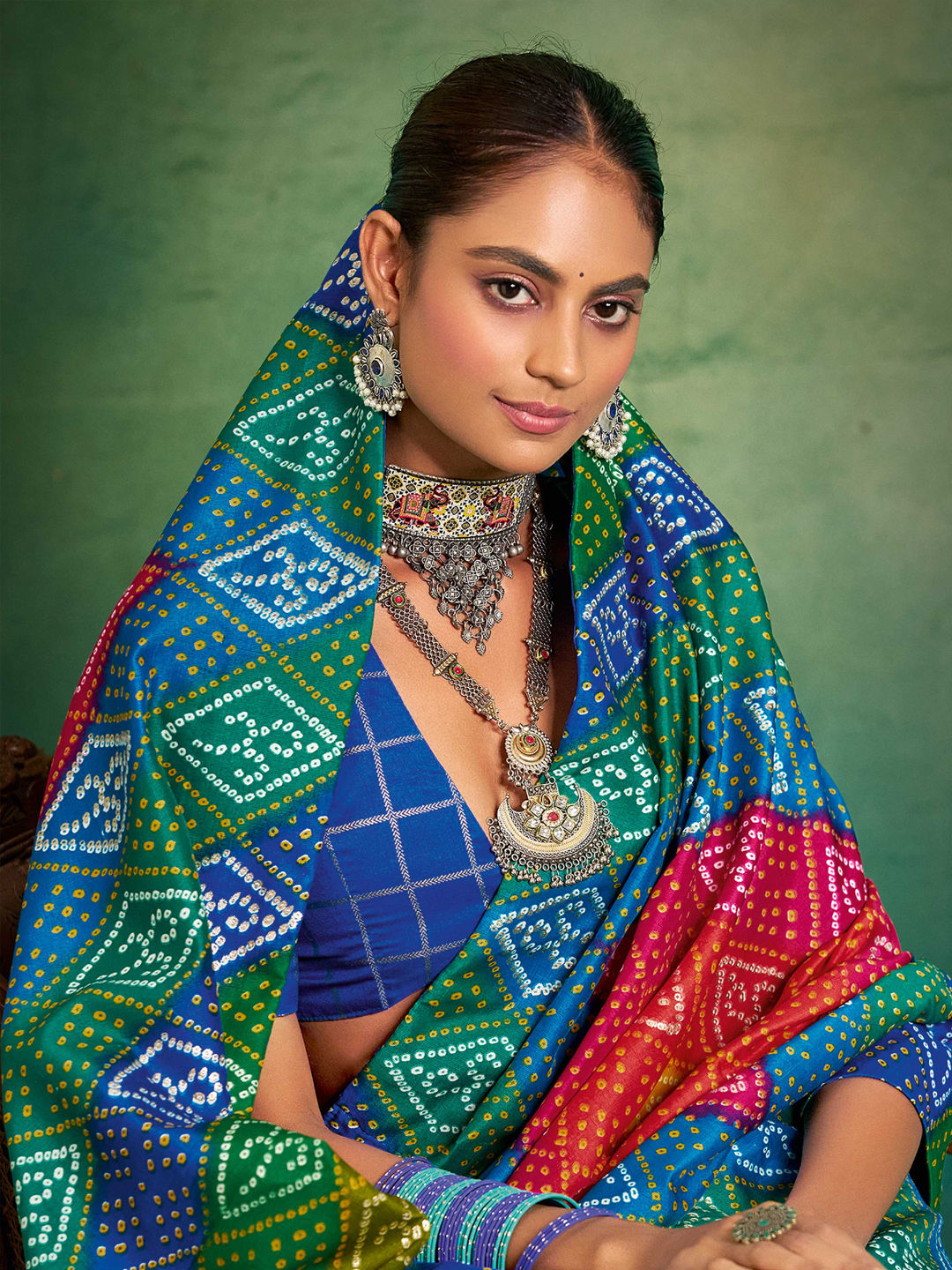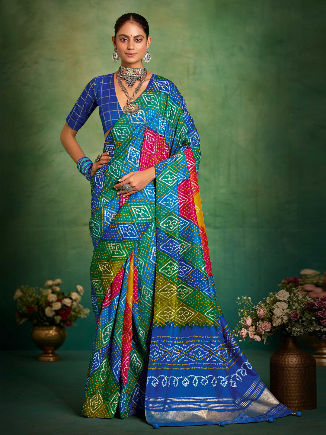 Blue color Saree in Tussar Silk fabric with Bandhej, Printed work