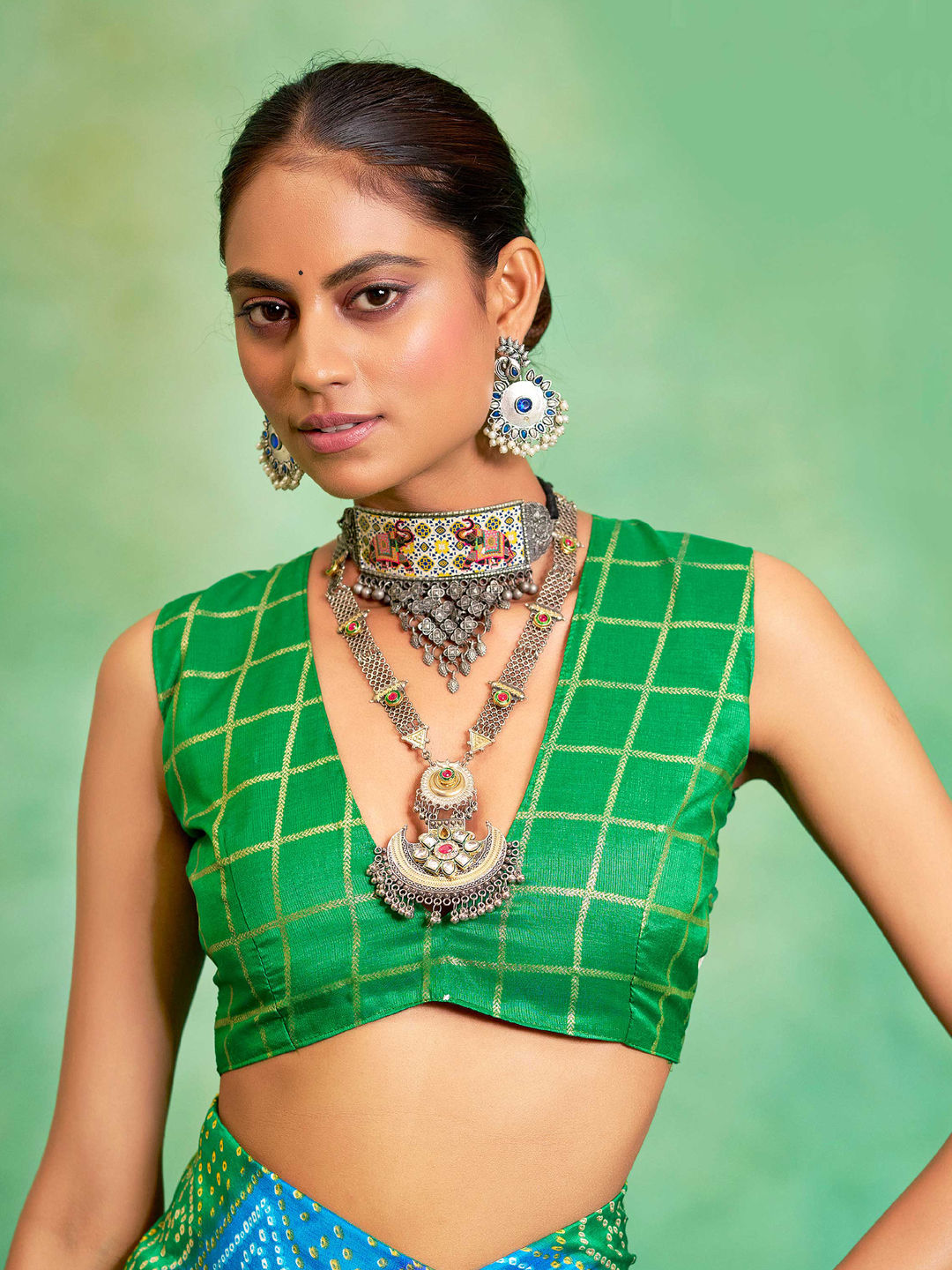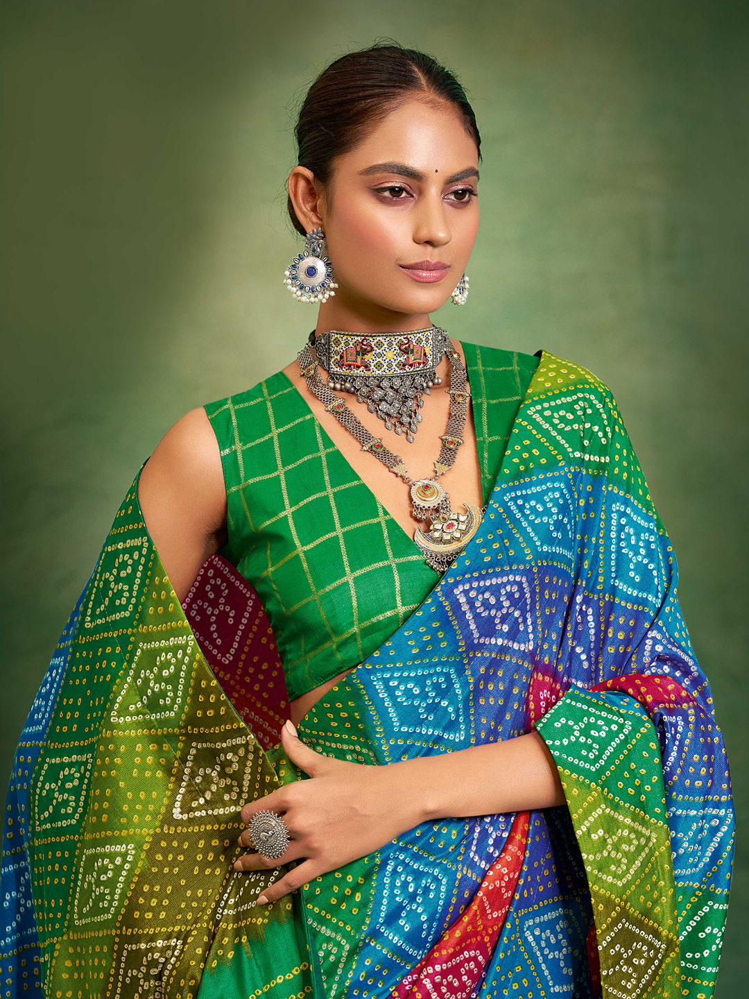Green color Saree in Tussar Silk fabric with Bandhej, Printed work