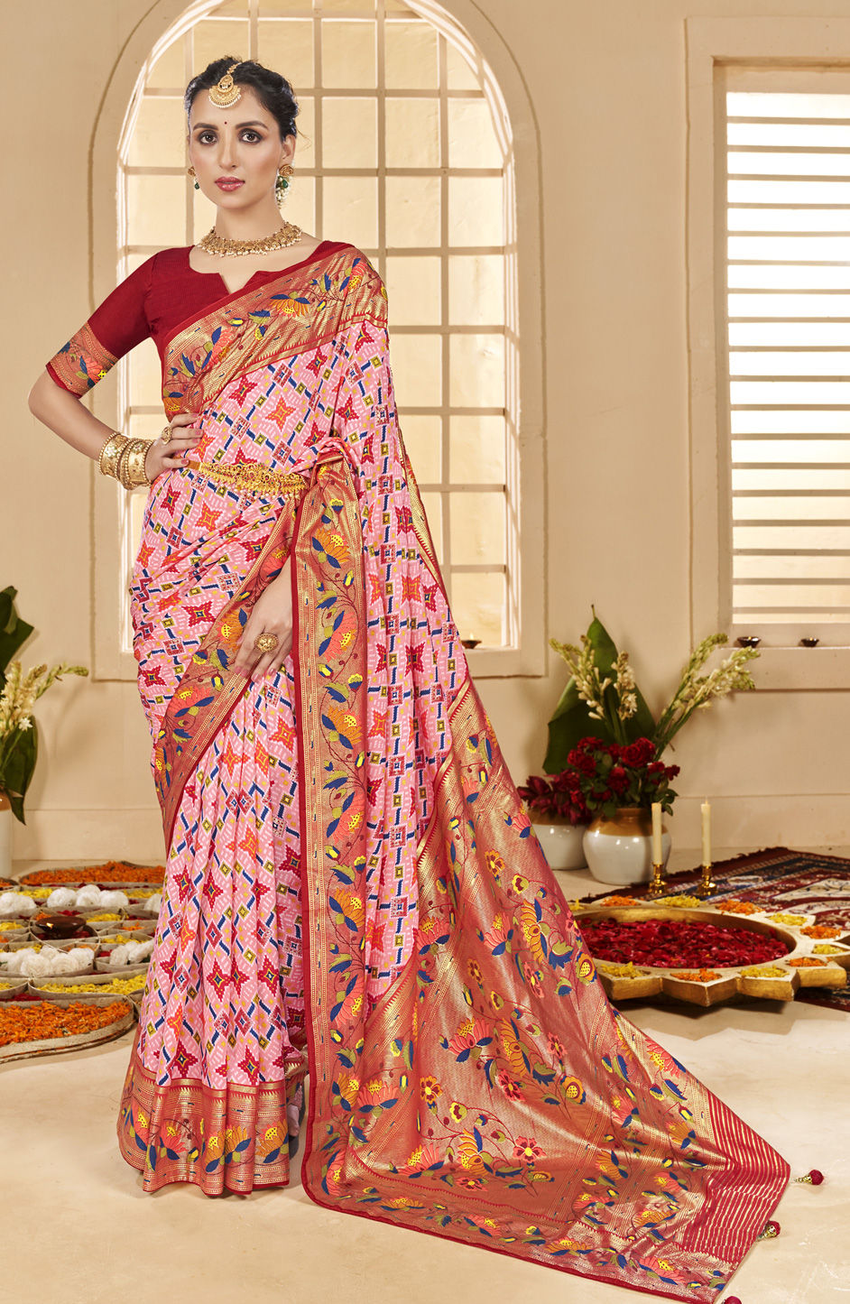Tussar Silk Traditional Saree in Pink and Majenta with Weaving work