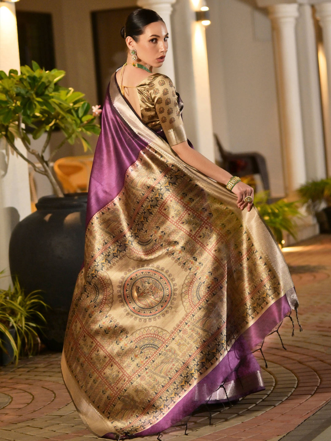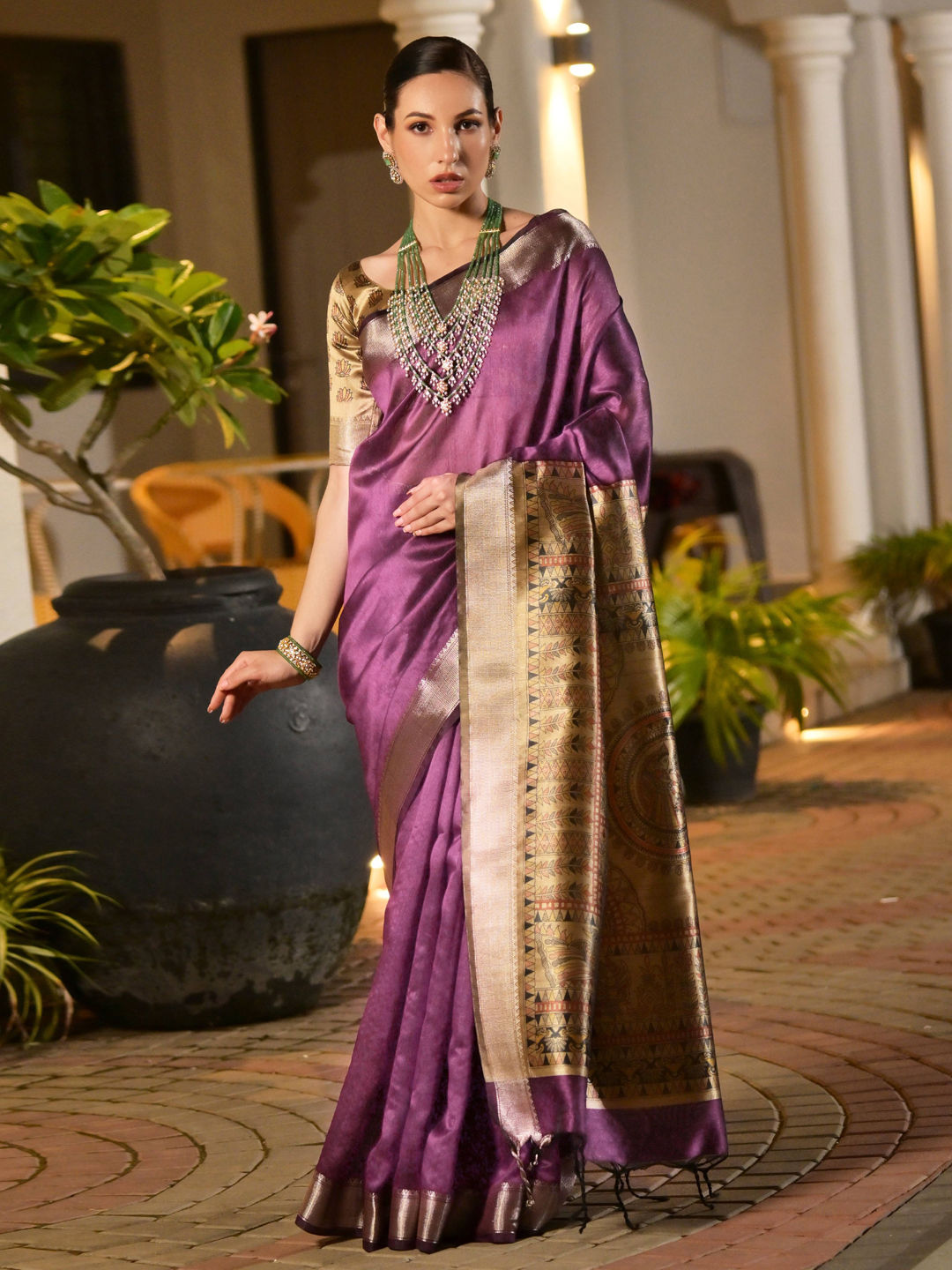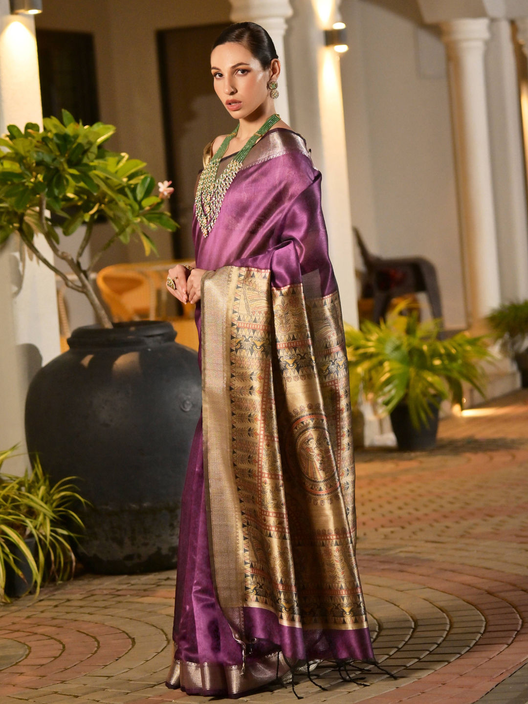 Purple and Violet color Saree in Tussar Silk fabric with Border, Zari work