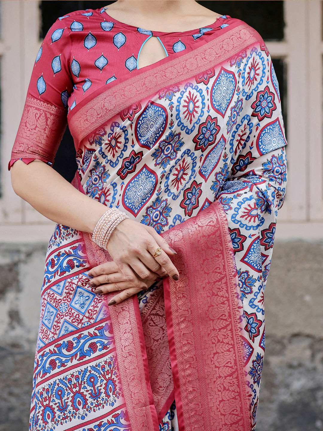 Tussar Silk Festive Saree in Pink and Majenta with Printed work