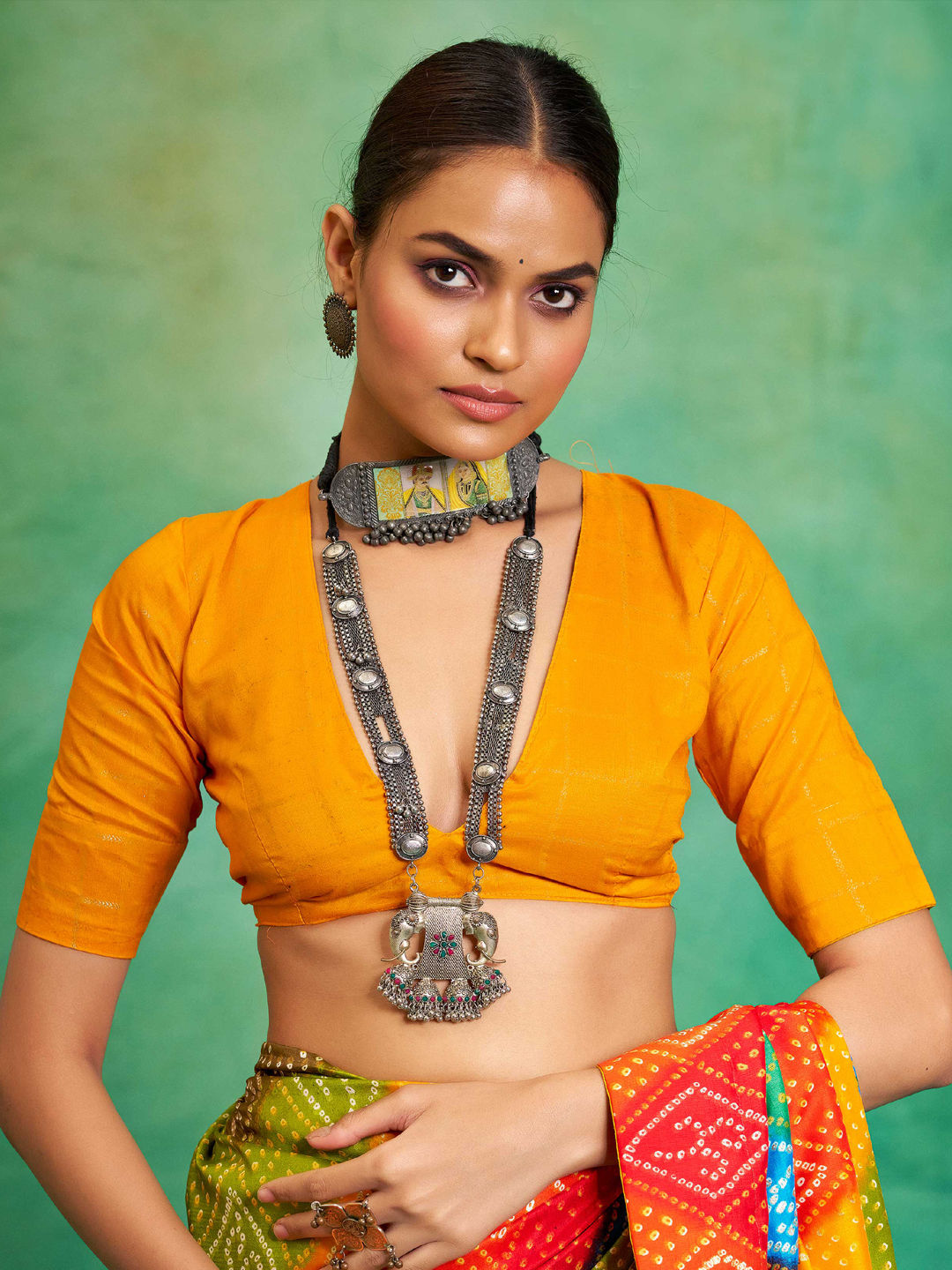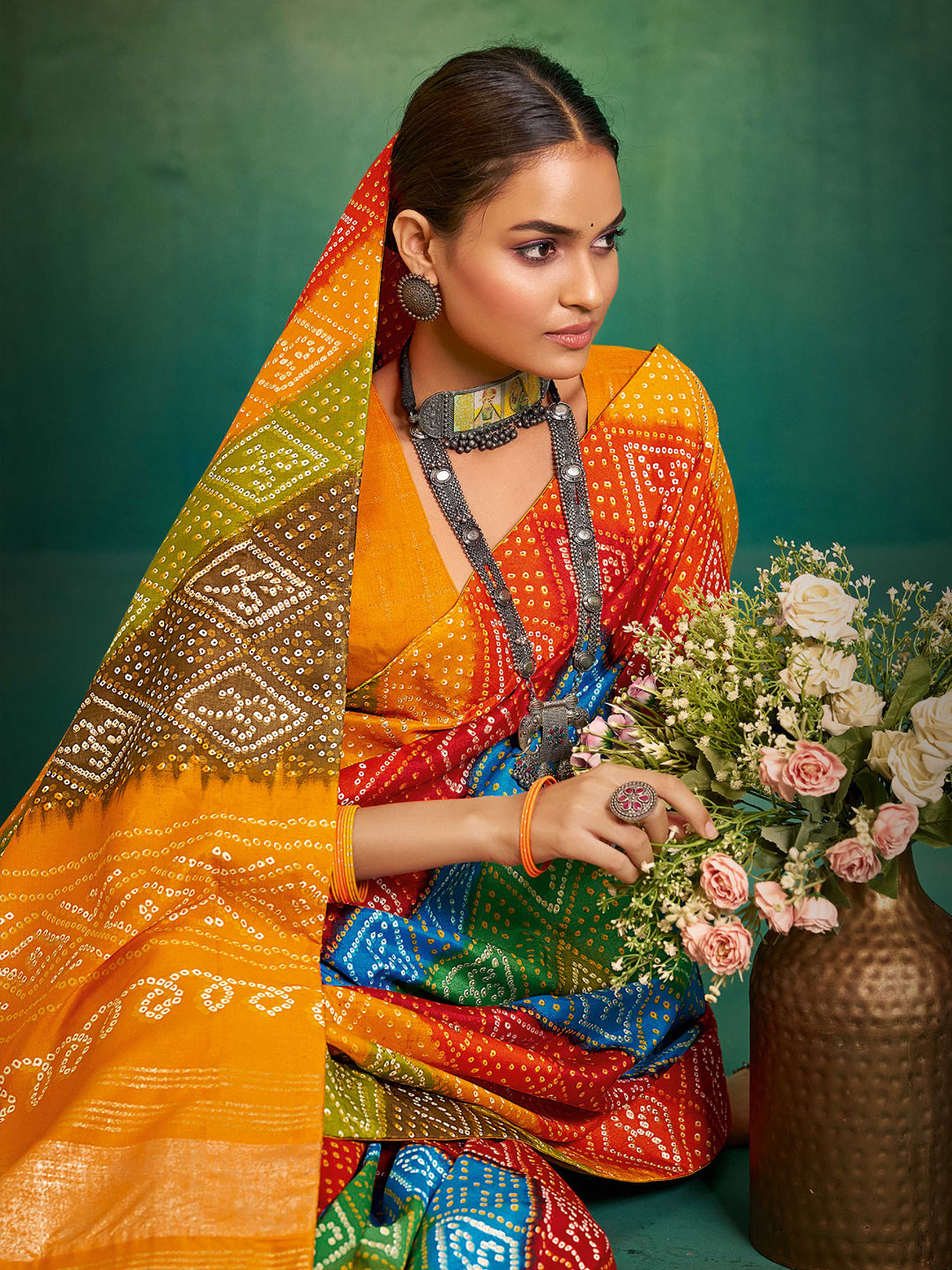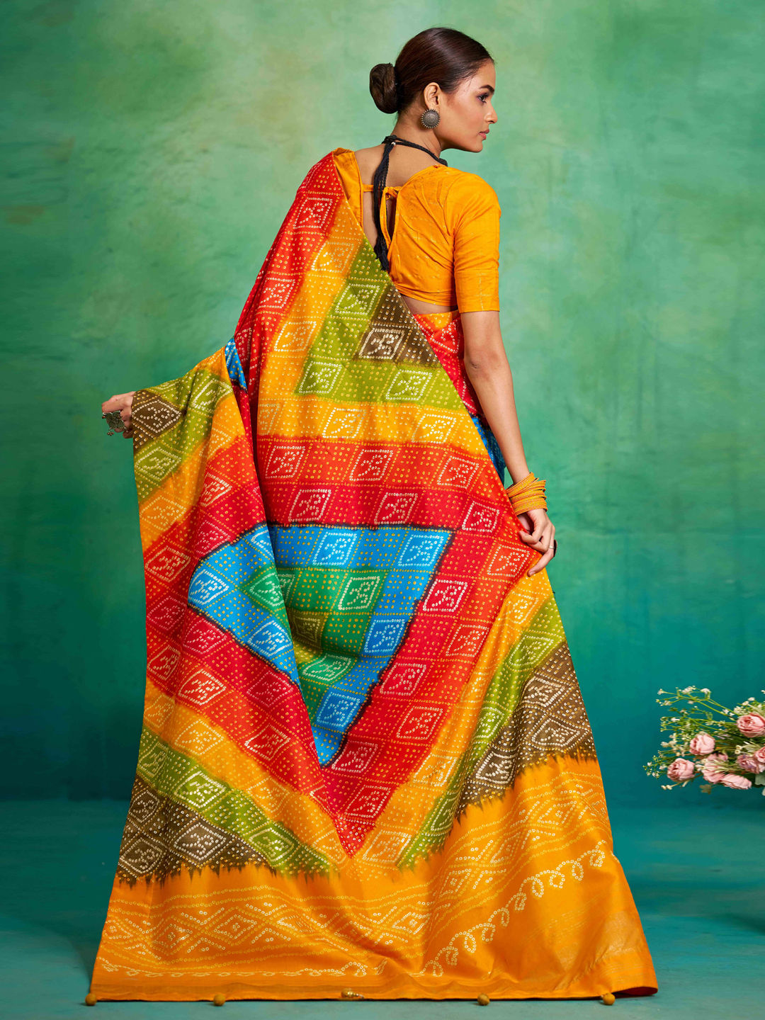 Yellow color Saree in Tussar Silk fabric with Bandhej, Printed work
