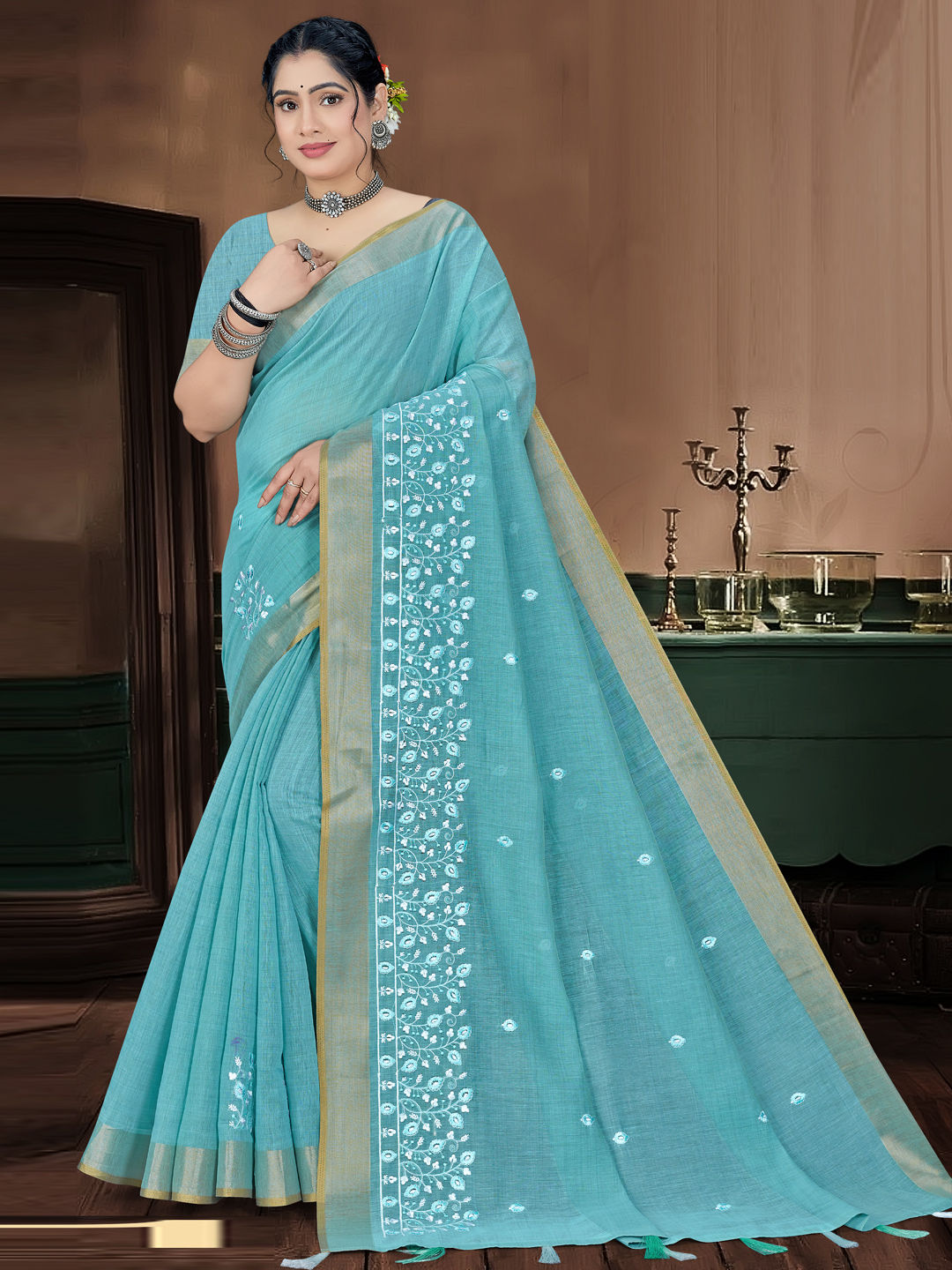Blue color Saree in Tussar Silk fabric with Embroidered, Resham work