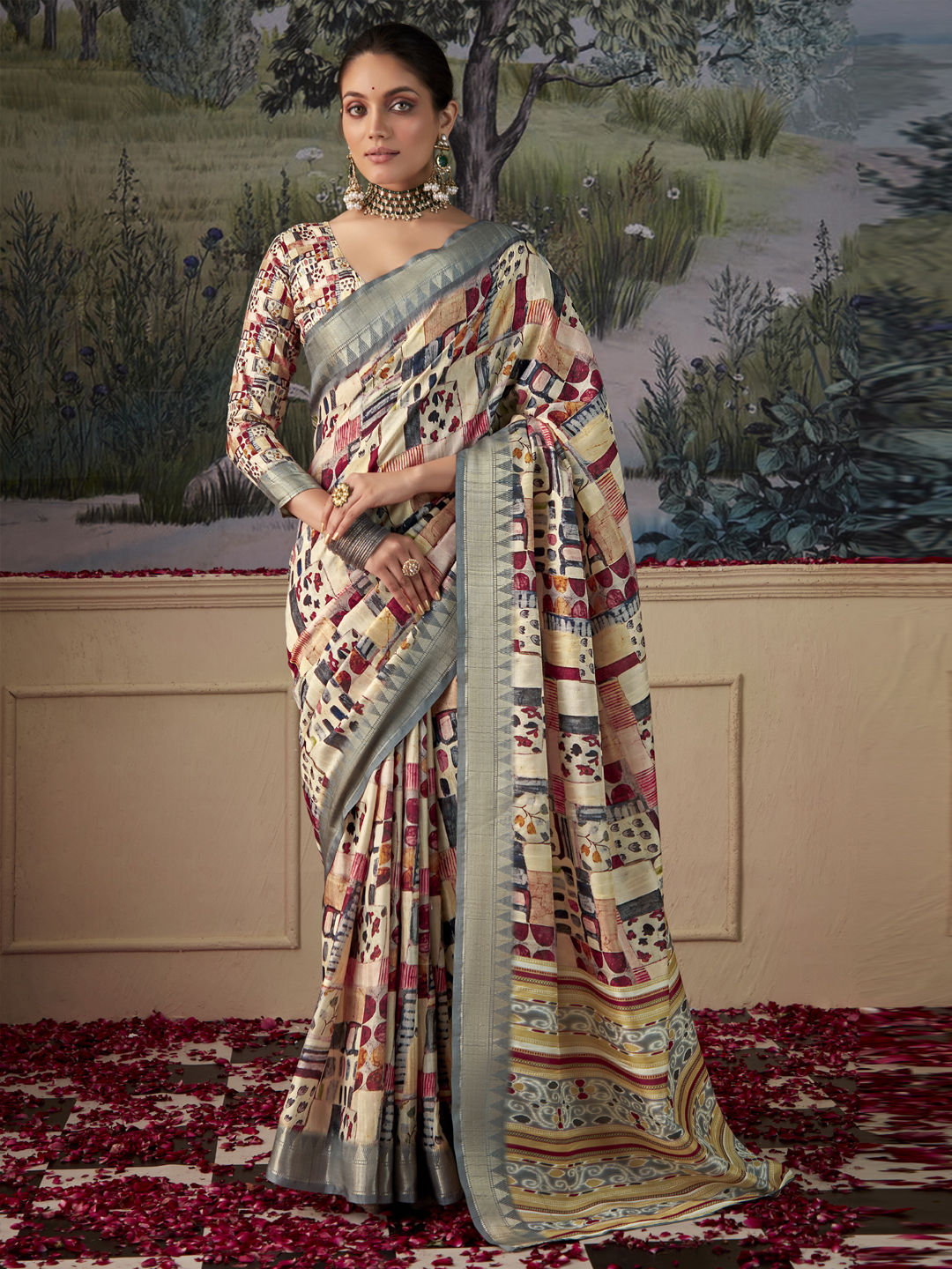 Tussar Silk Party Wear Saree in Multicolor with Digital Print work