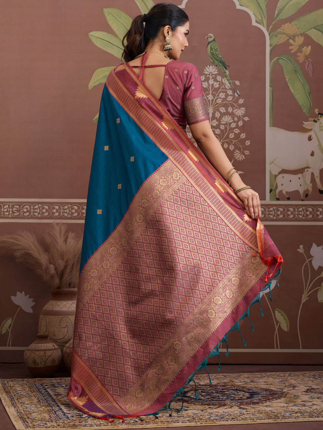 in Blue with Weaving work