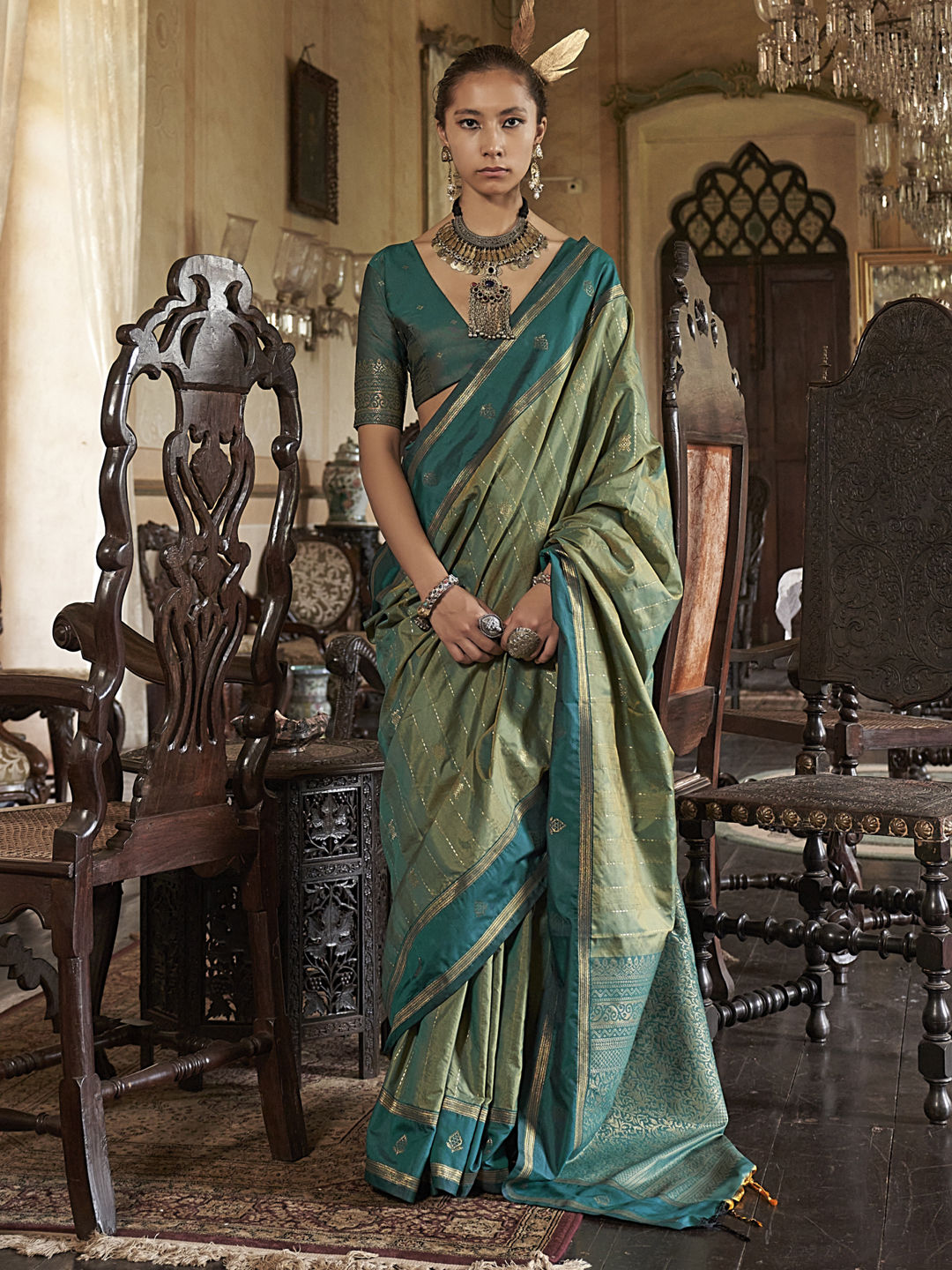 Tussar Silk Festive Saree in Beige and Brown with Weaving work