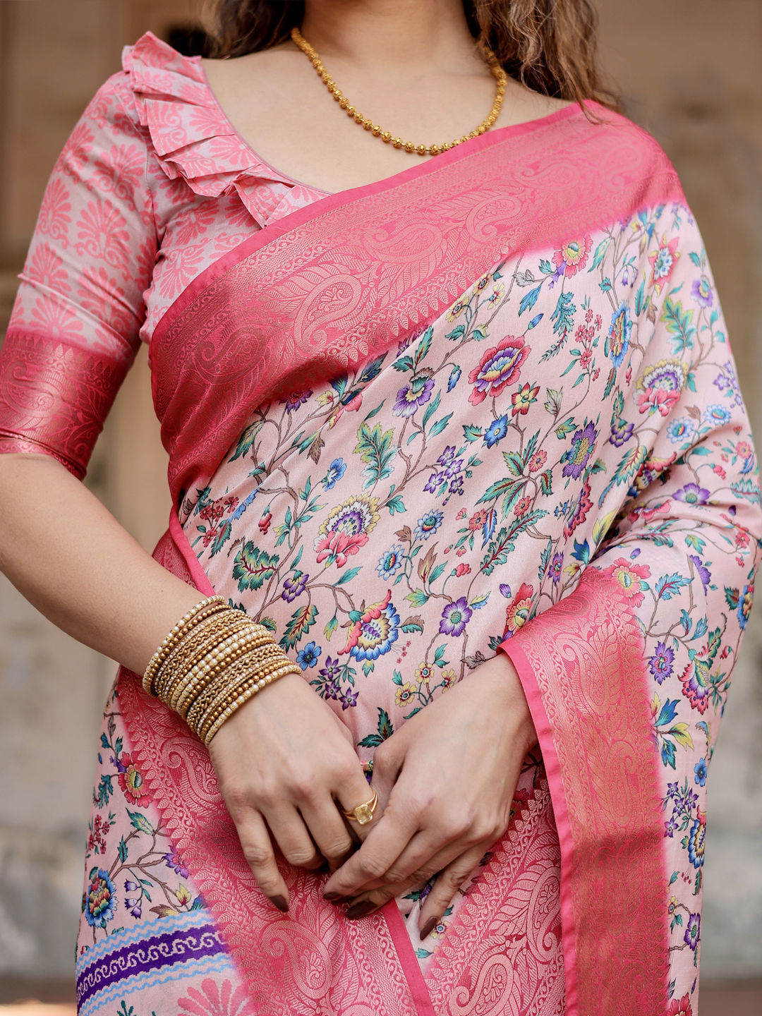 in Pink and Majenta with Printed work