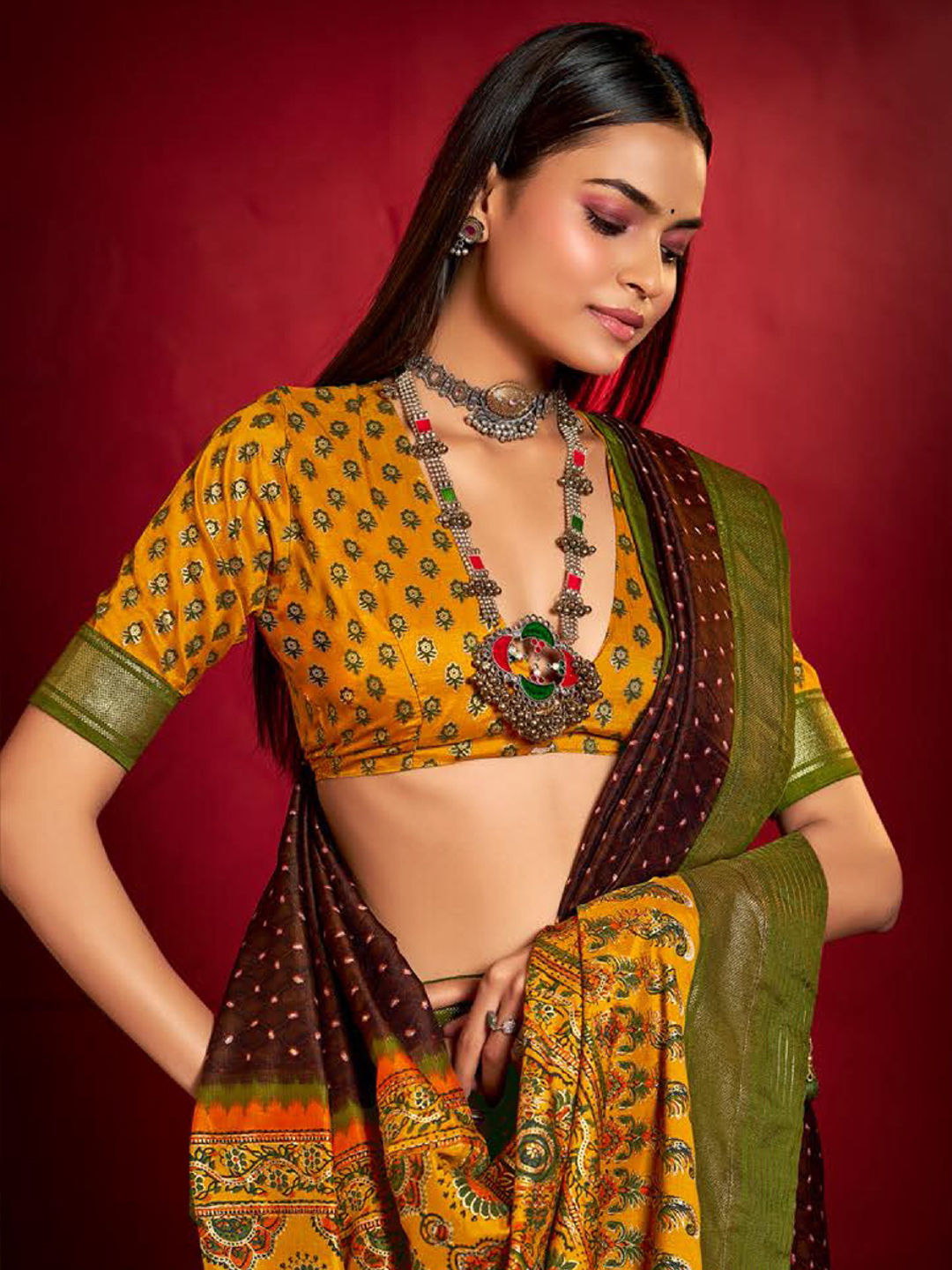 Beige and Brown color Saree in Tussar Silk fabric with Printed work