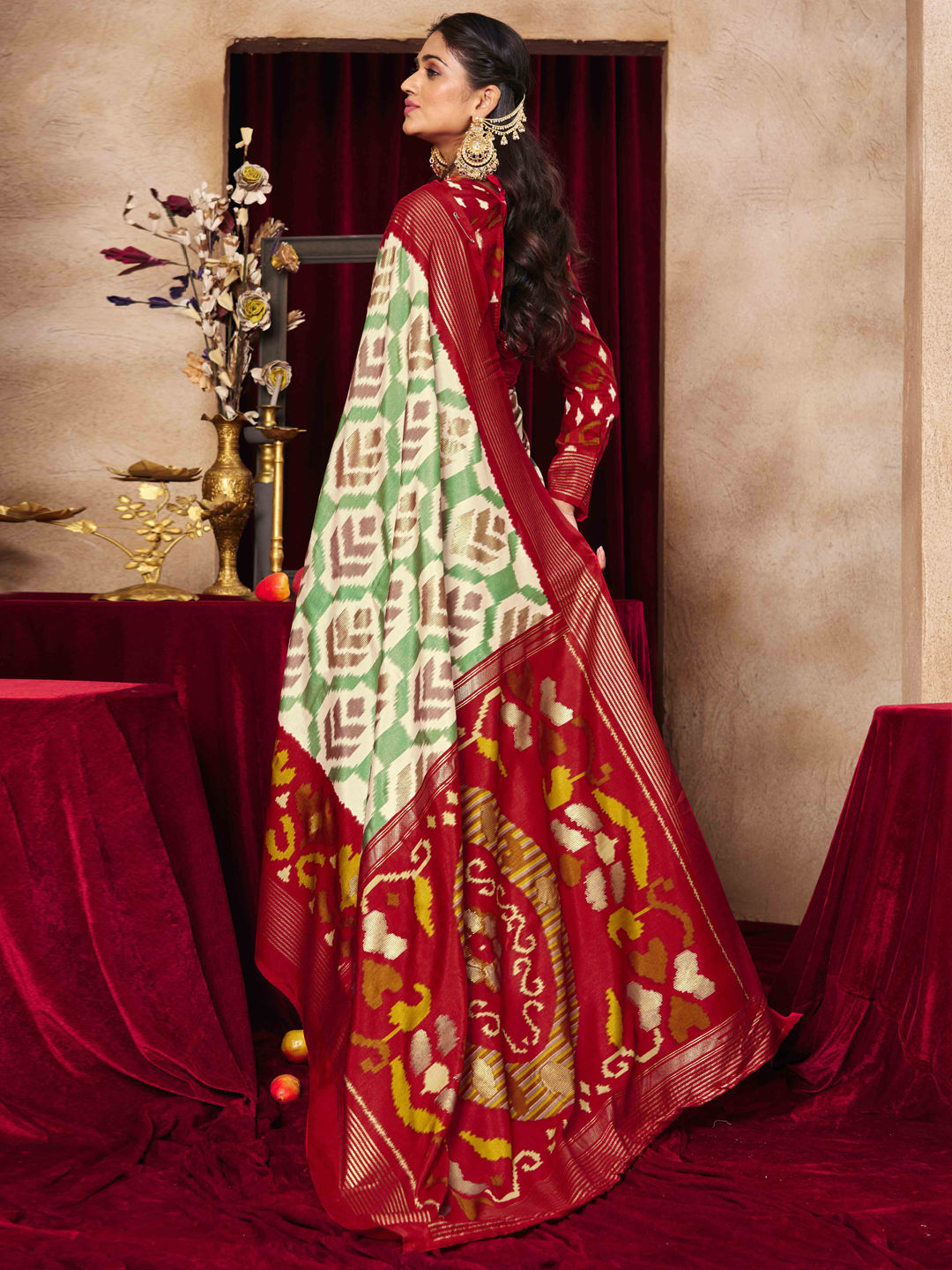 Tussar Silk Traditional Saree in White and Off White with Weaving work