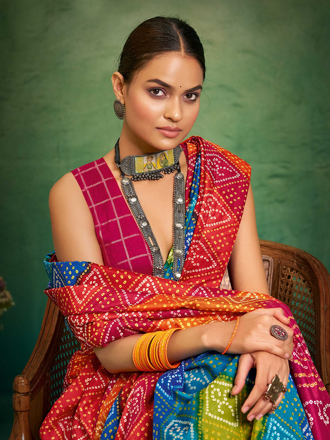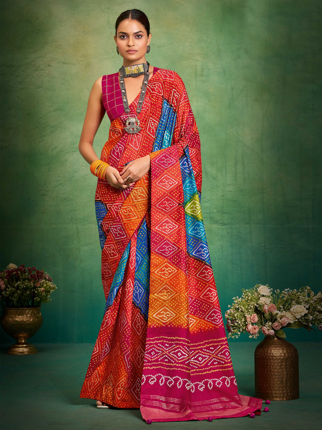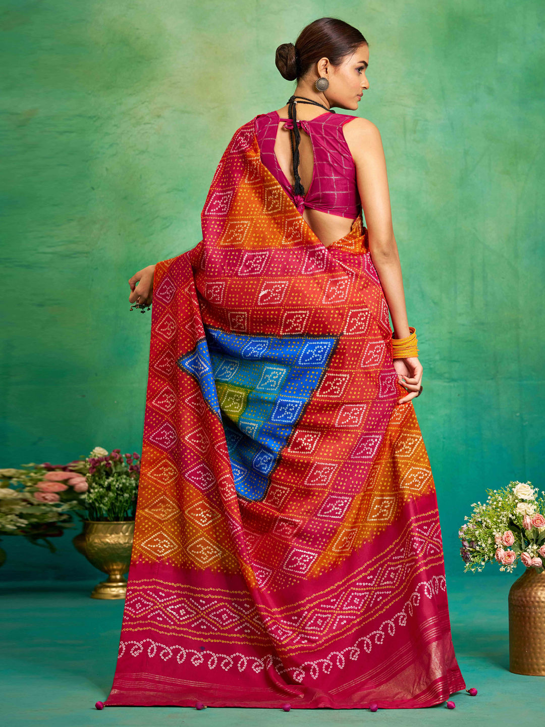 Orange color Saree in Tussar Silk fabric with Bandhej, Printed work