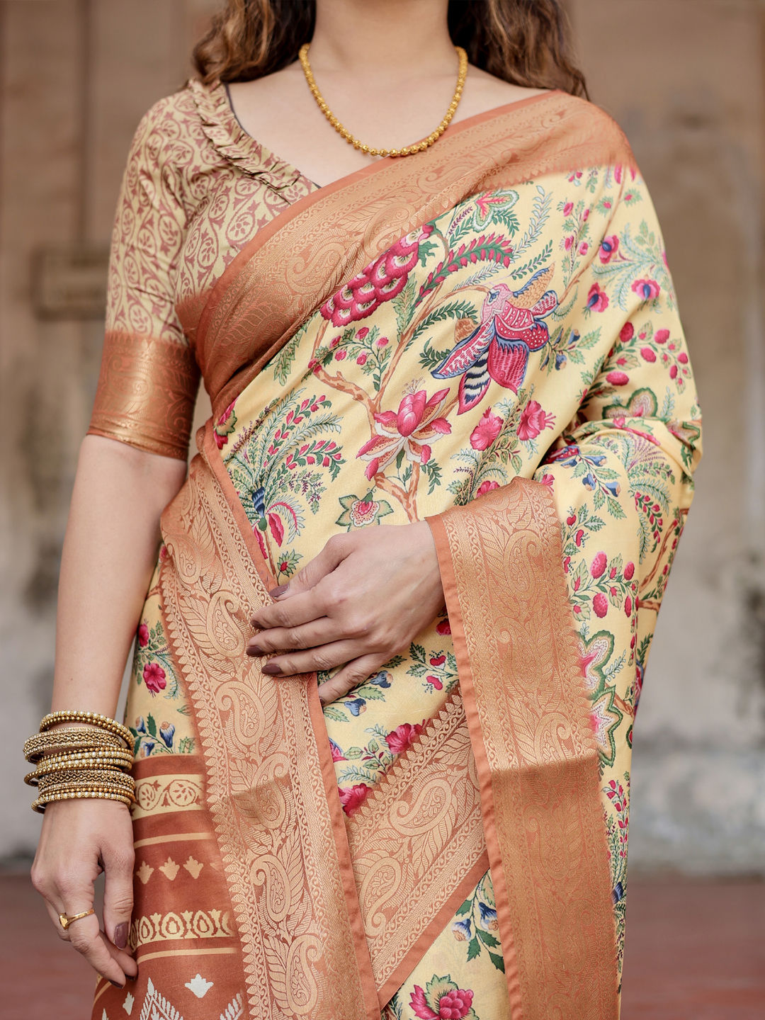 Tussar Silk Party Wear Saree in Gold with Weaving work