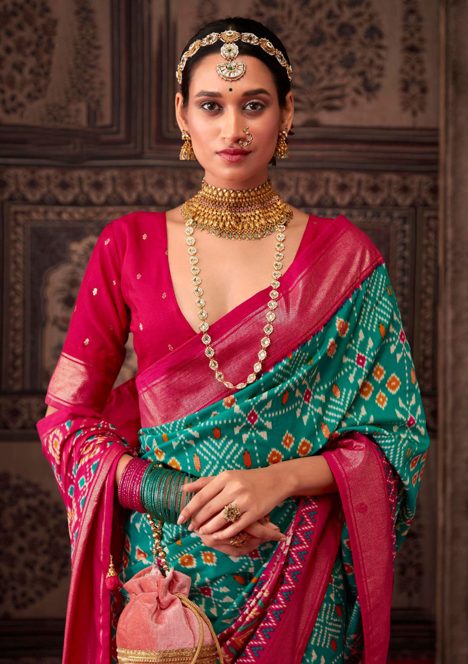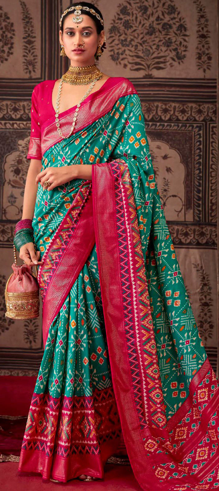 in Pink and Majenta with Printed work