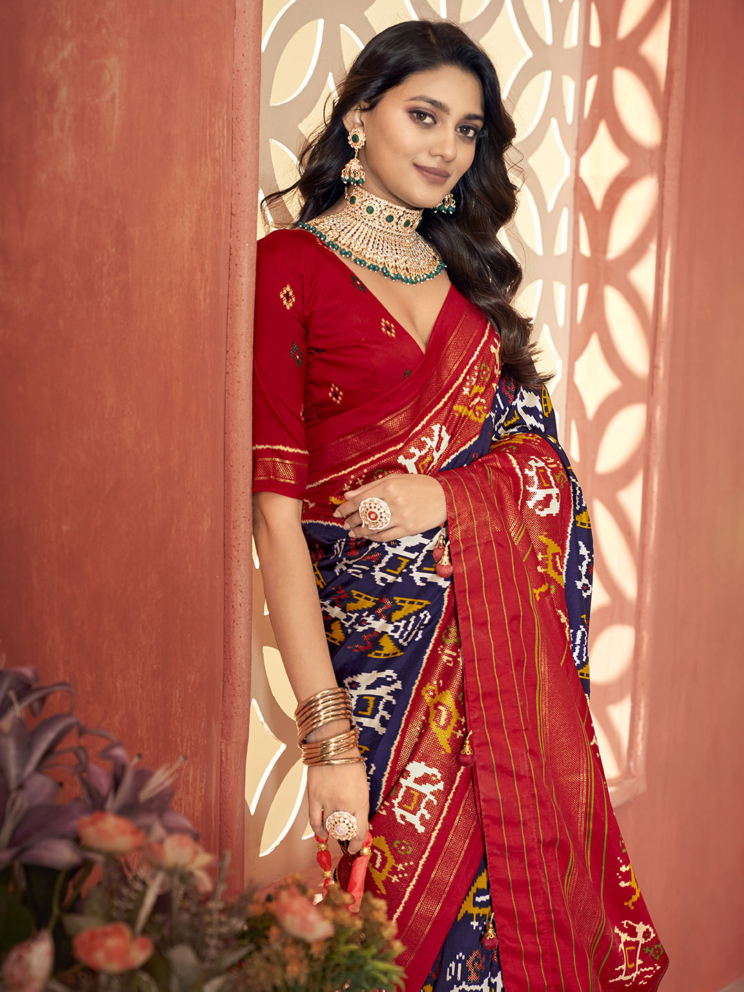 Blue, Red and Maroon color Saree in Tussar Silk fabric with Foil Print work