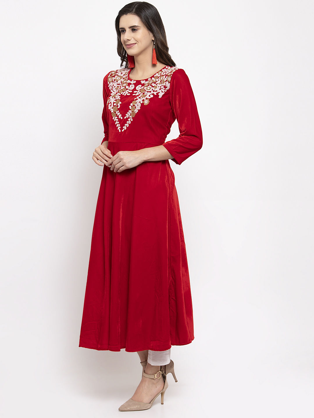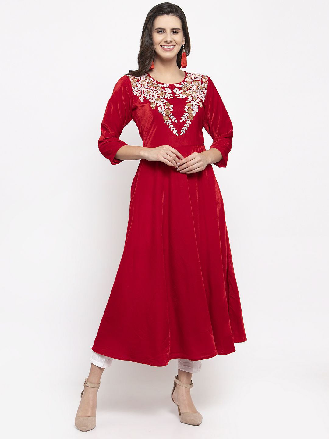 in Red and Maroon with Embroidered work