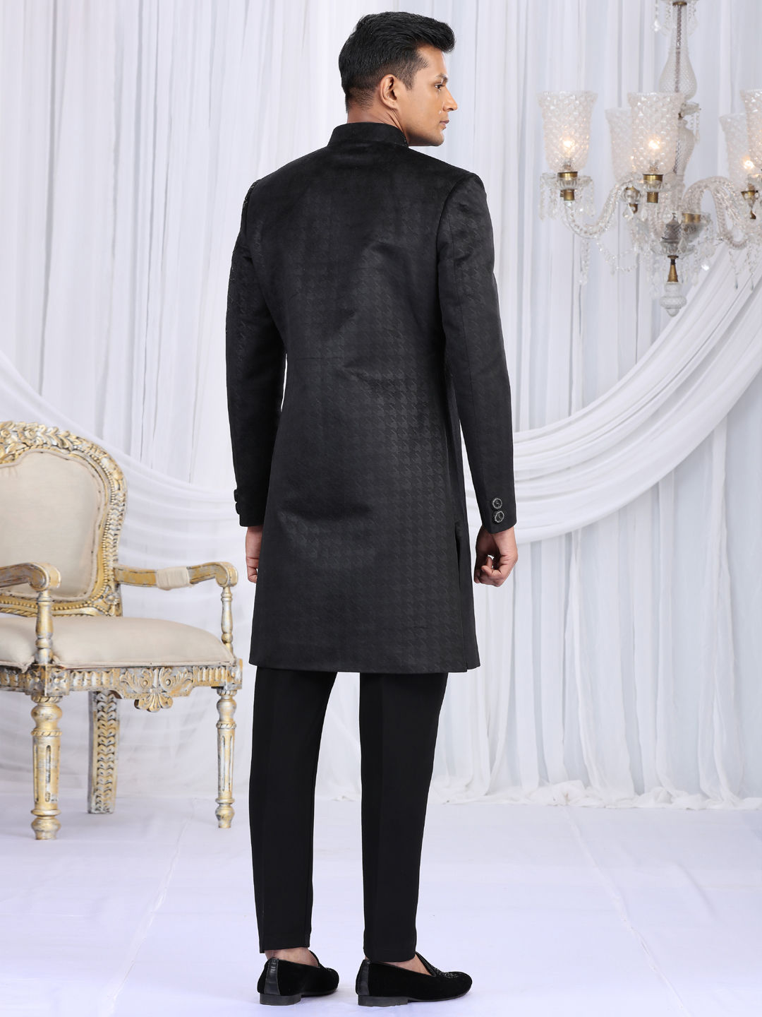 Art Silk Wedding Sherwani in Black and Grey with Sequence work