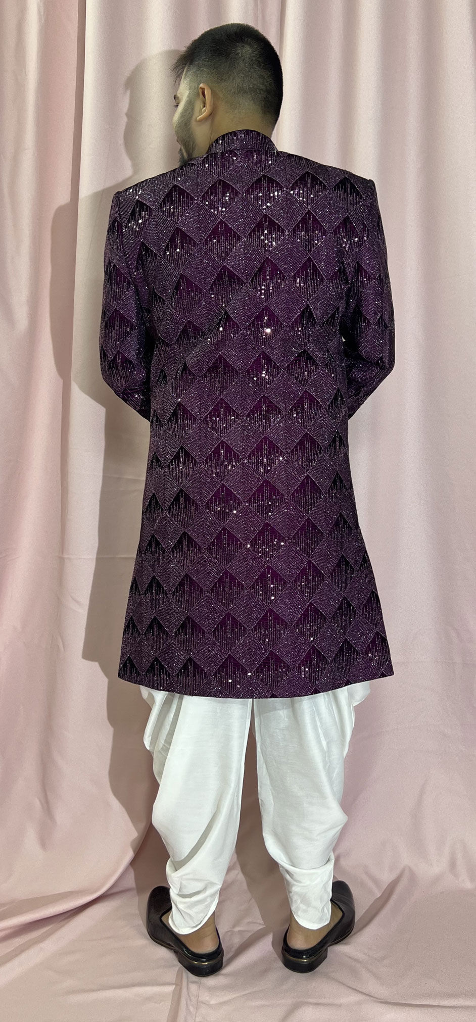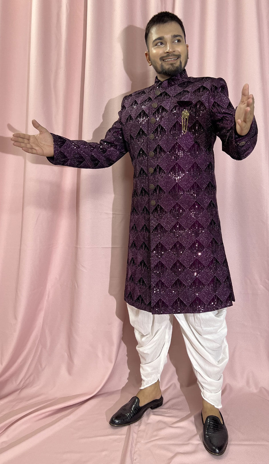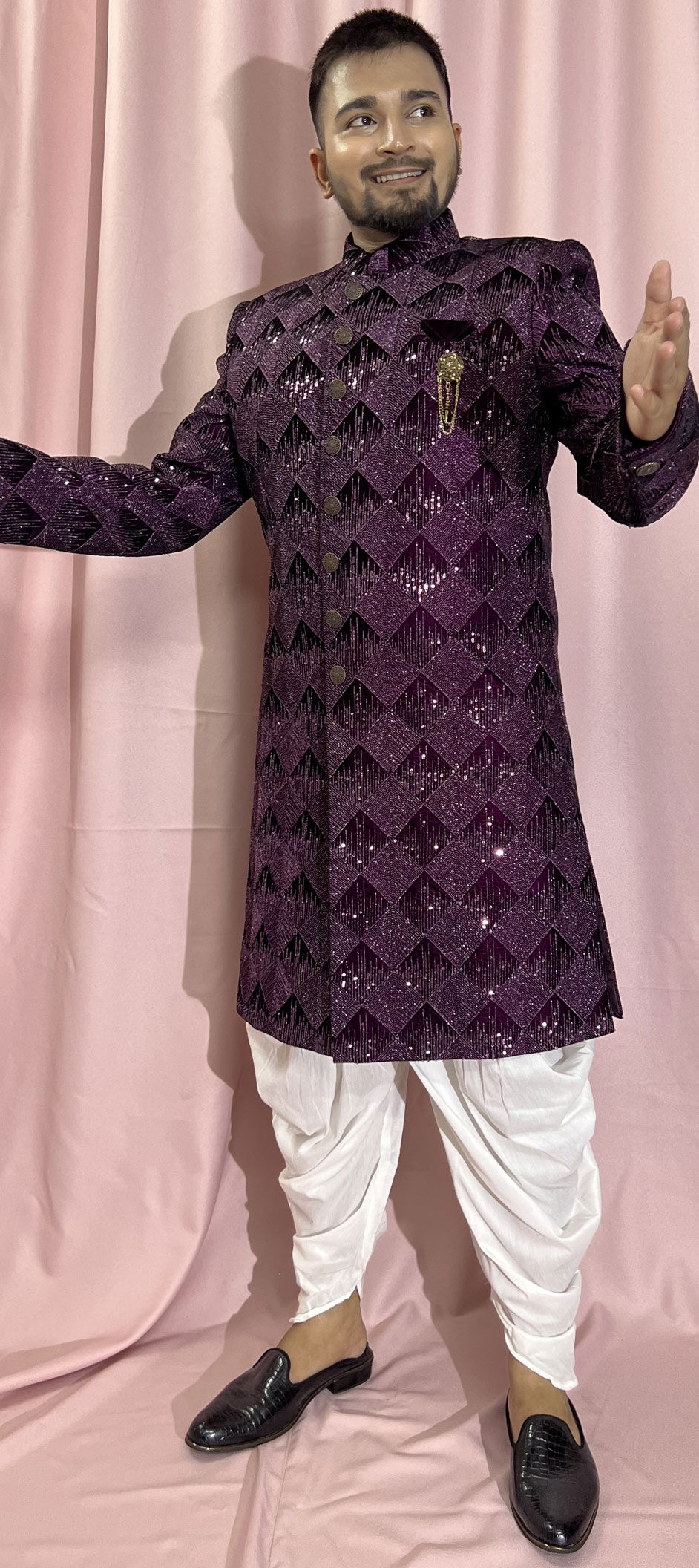 Purple and Violet color IndoWestern Dress in Velvet fabric with Sequence, Thread work