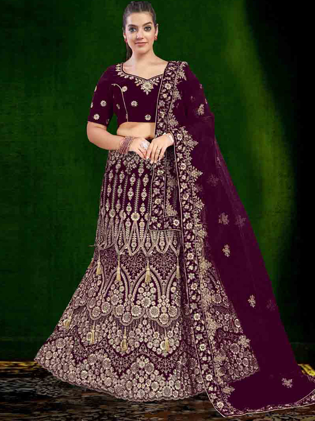 Purple and Violet color Lehenga in Velvet fabric with Embroidered, Sequence, Thread work