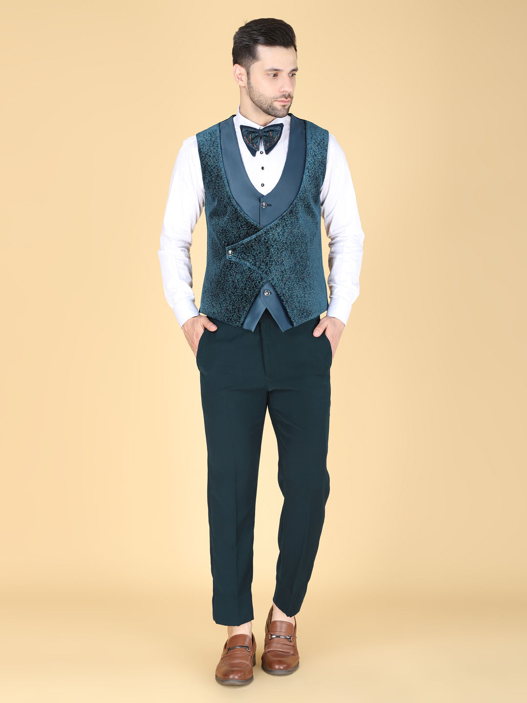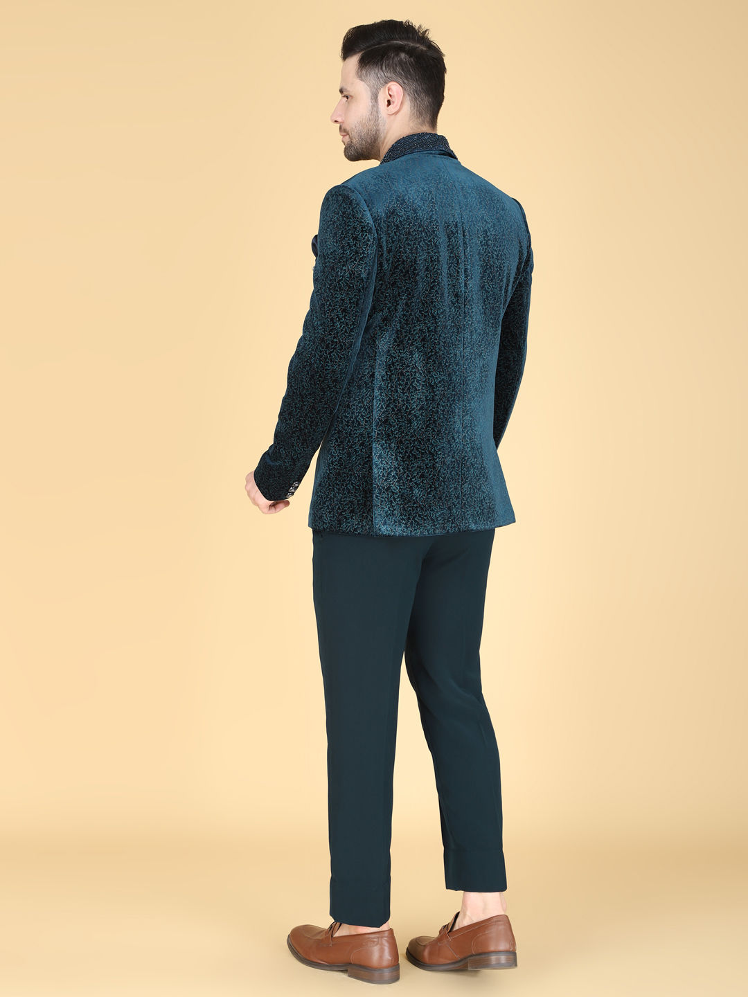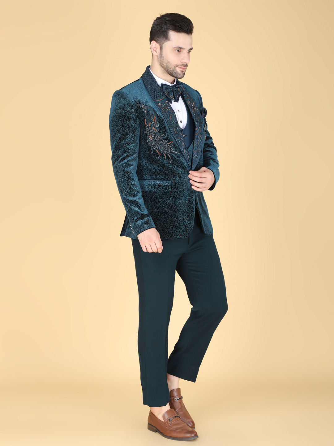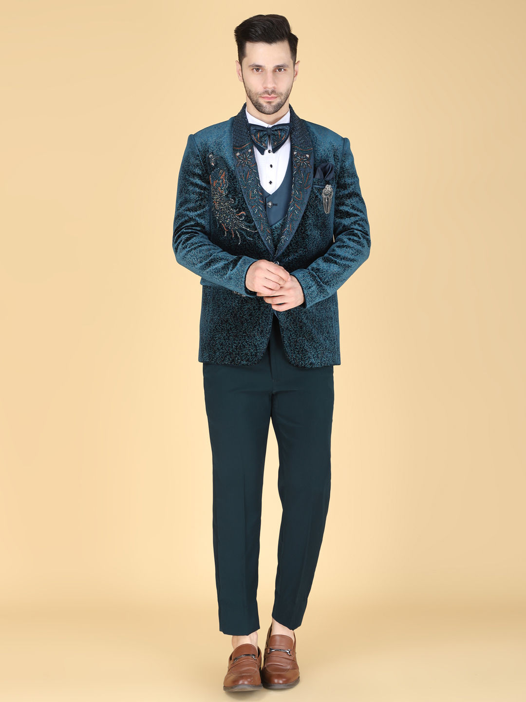 Blue color Tuxedo in Velvet fabric with Embroidered work