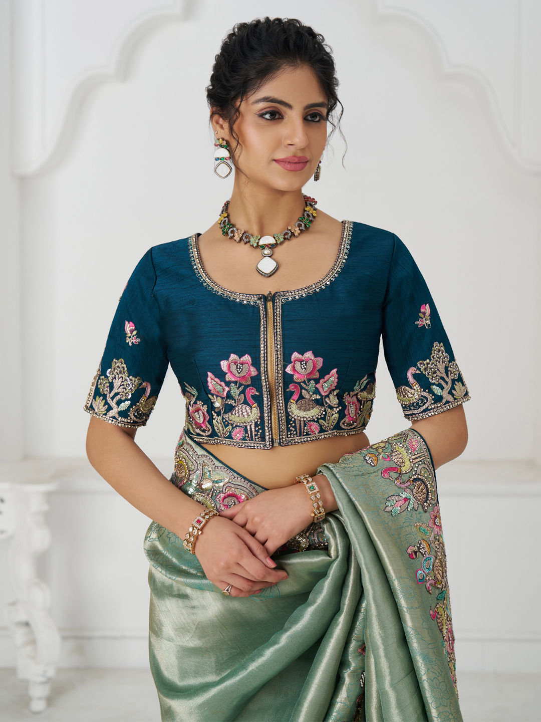 in Blue with Embroidered work