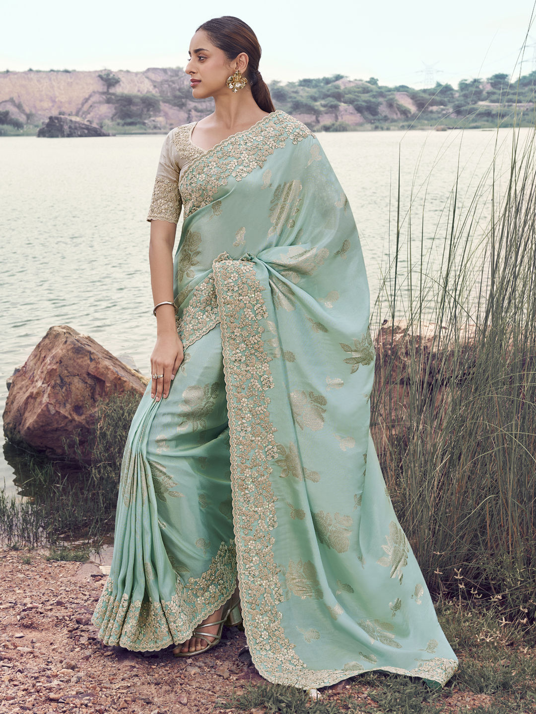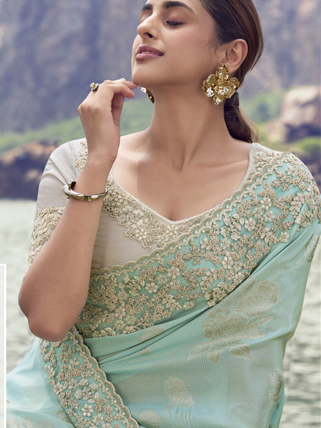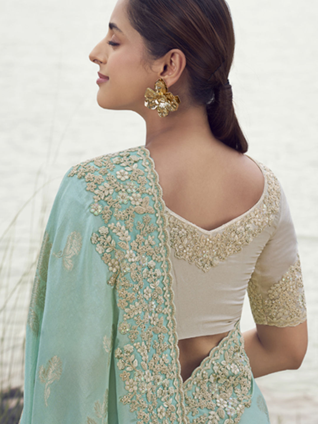 Blue color Saree in Viscose fabric with Embroidered, Resham, Sequence, Thread, Zari work