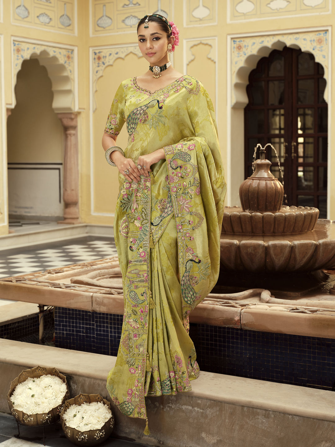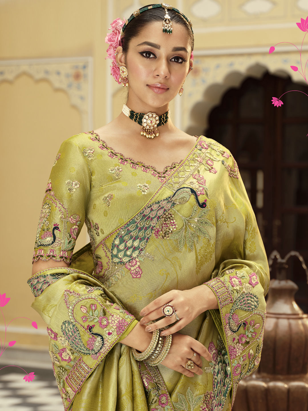 Green color Saree in Viscose fabric with Embroidered, Sequence, Thread, Weaving work