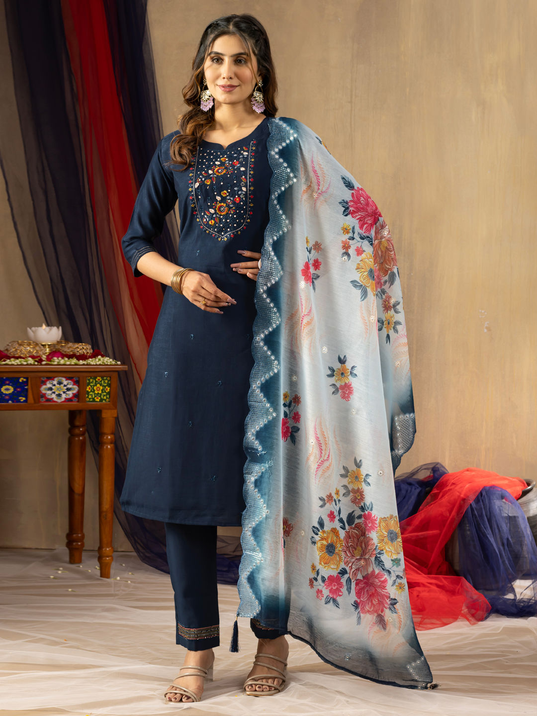 Blue color Salwar Kameez in Viscose fabric with Embroidered, Sequence, Thread work