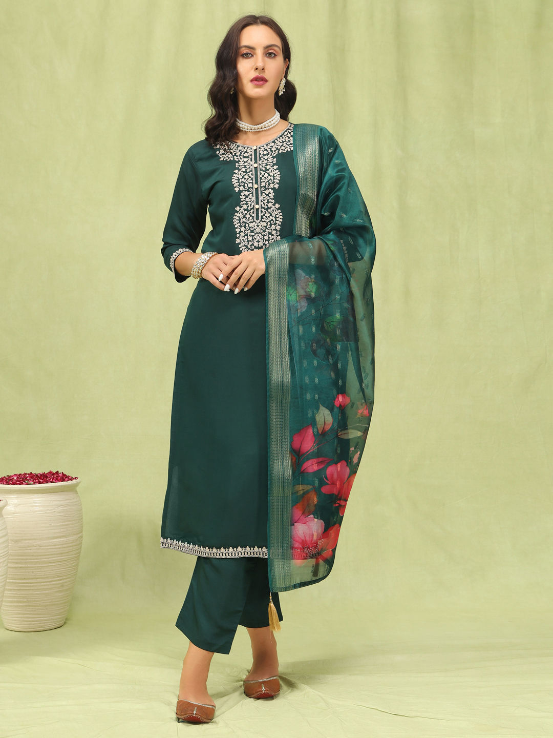 Green color Salwar Kameez in Viscose fabric with Embroidered, Thread work