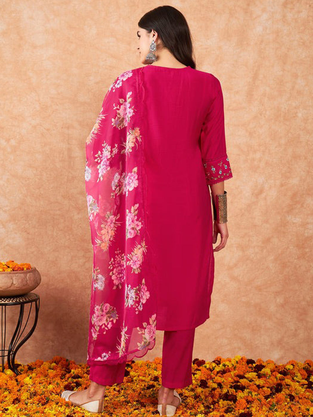 Pink and Majenta color Salwar Kameez in Viscose fabric with Embroidered, Thread work