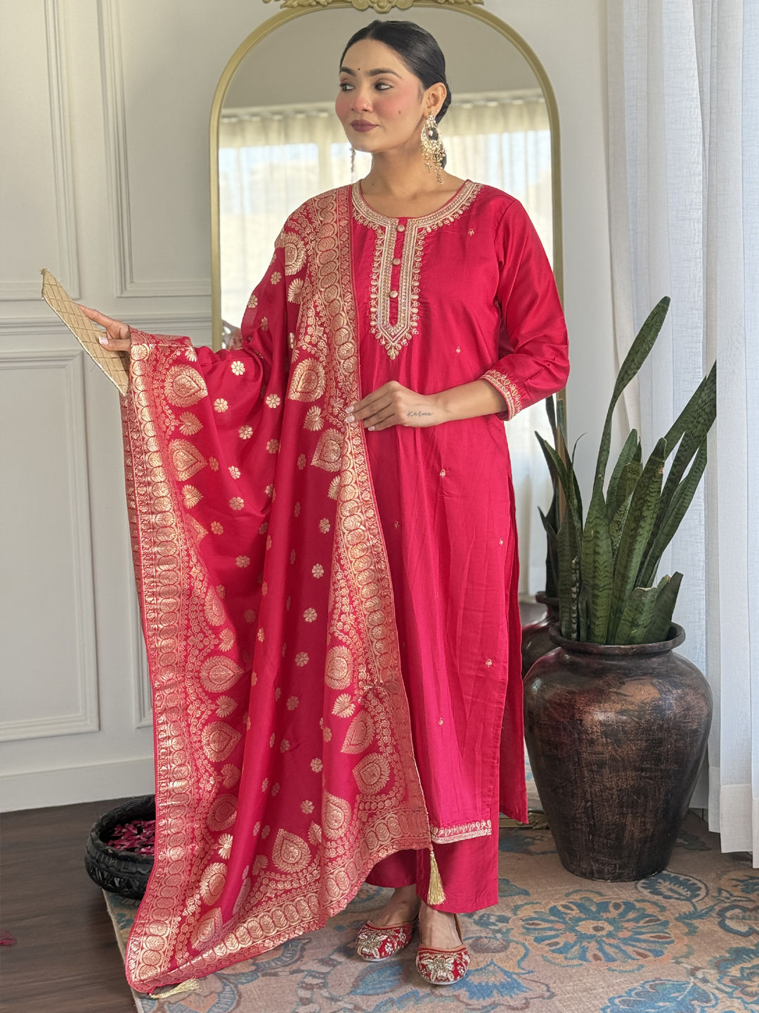 in Pink and Majenta with Embroidered work