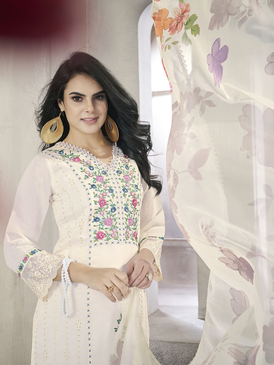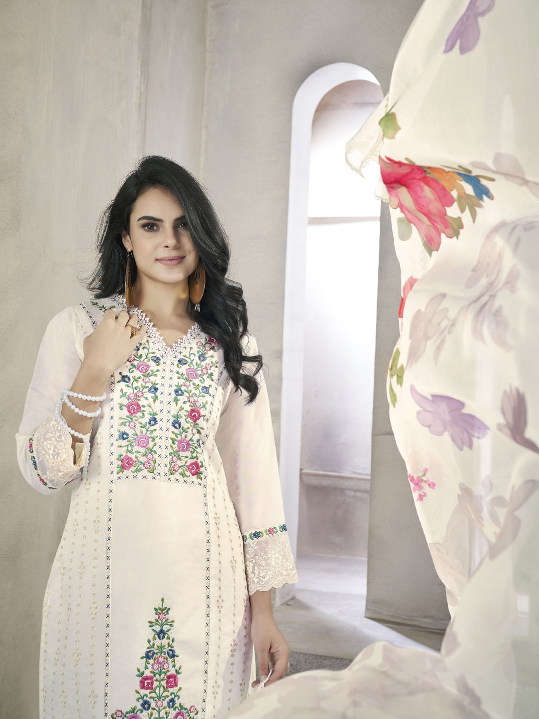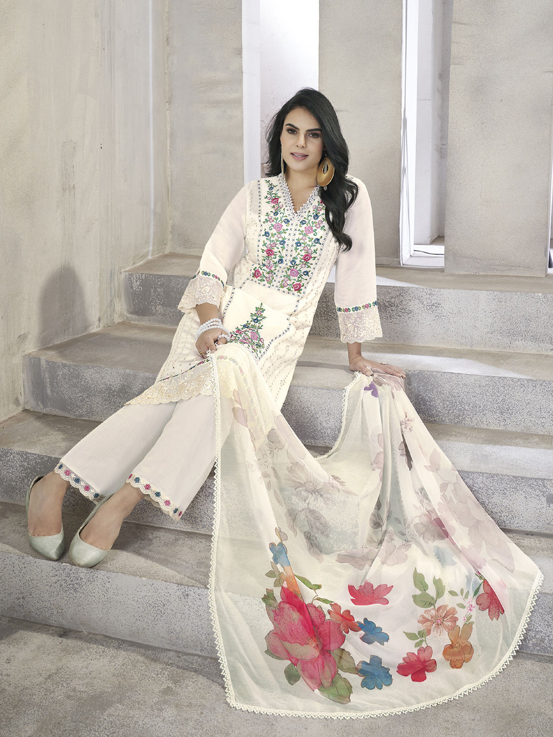 in White and Off White with Embroidered work