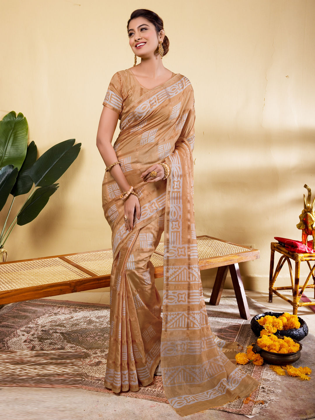 Beige and Brown color Saree in Viscose fabric with Bandhej, Printed work