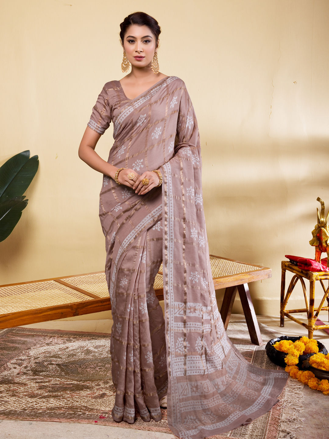 Beige and Brown color Saree in Viscose fabric with Bandhej, Printed work