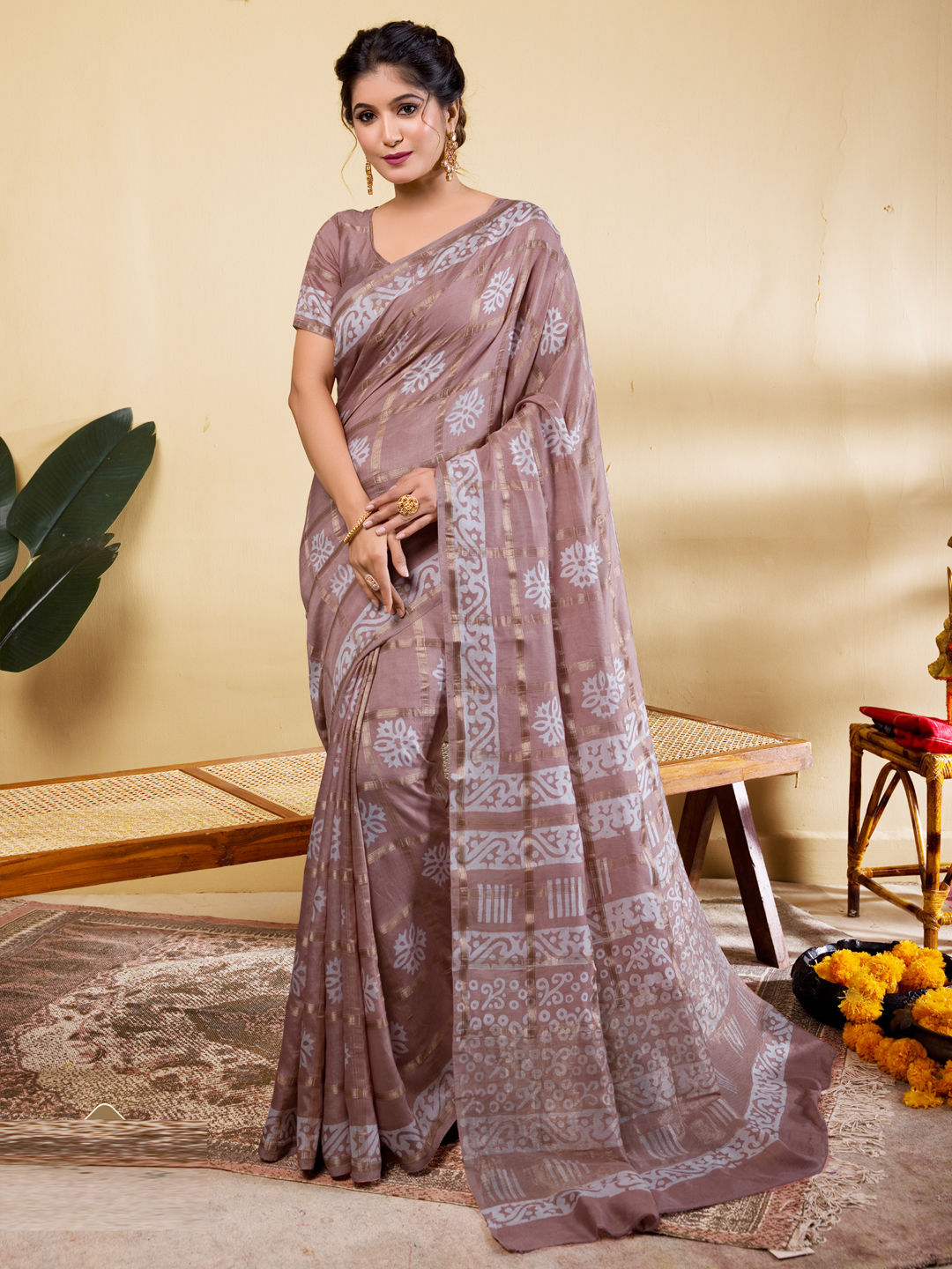 Beige and Brown color Saree in Viscose fabric with Bandhej, Printed work