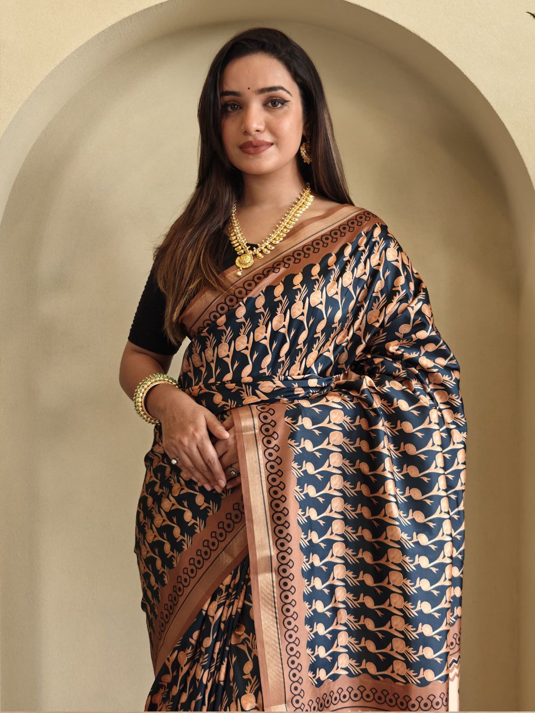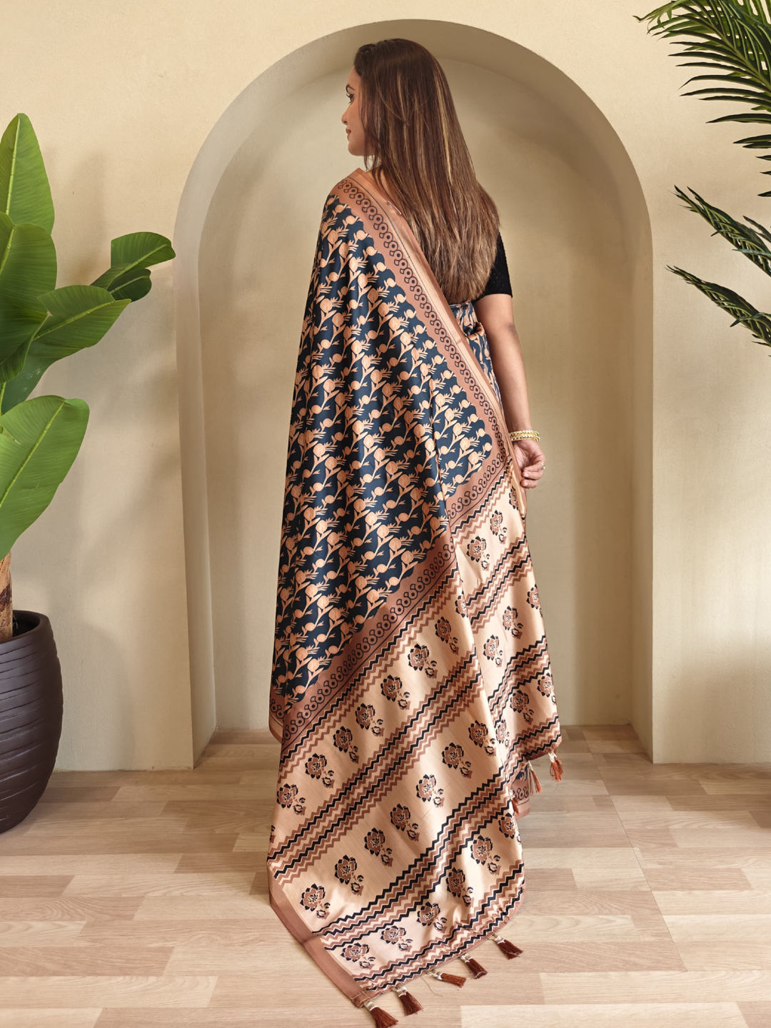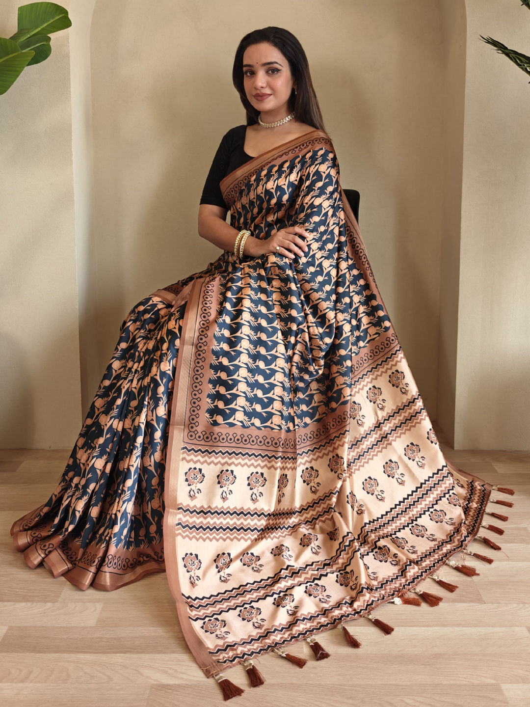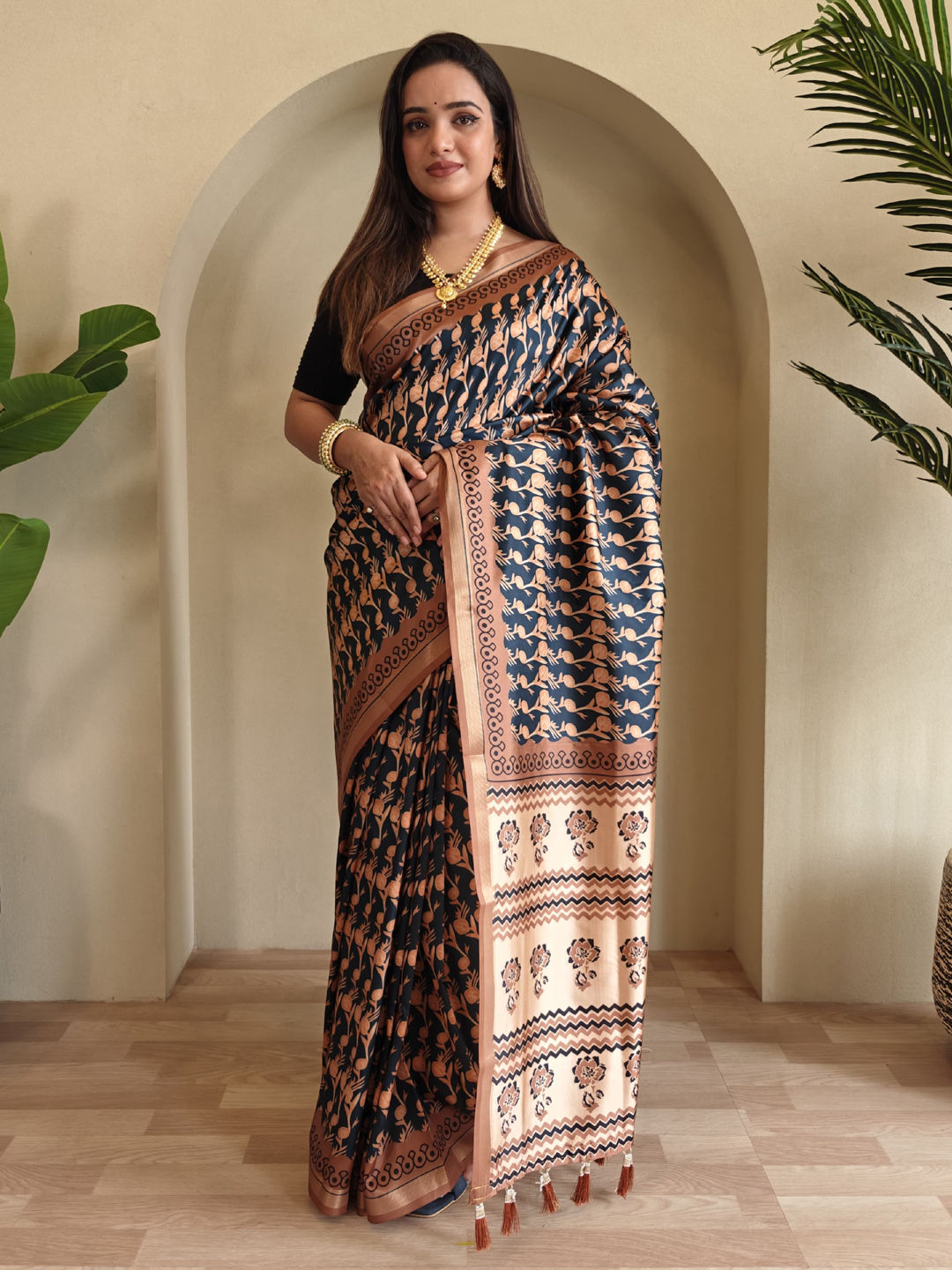 Beige and Brown color Saree in Viscose fabric with Printed work