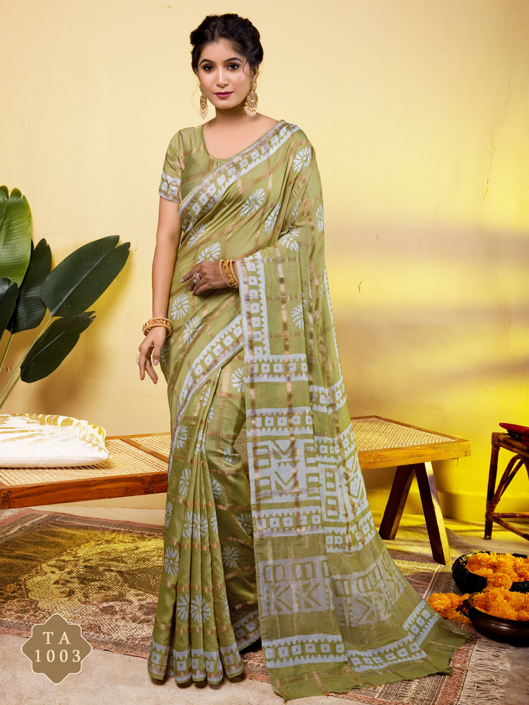 Green color Saree in Viscose fabric with Bandhej, Printed work