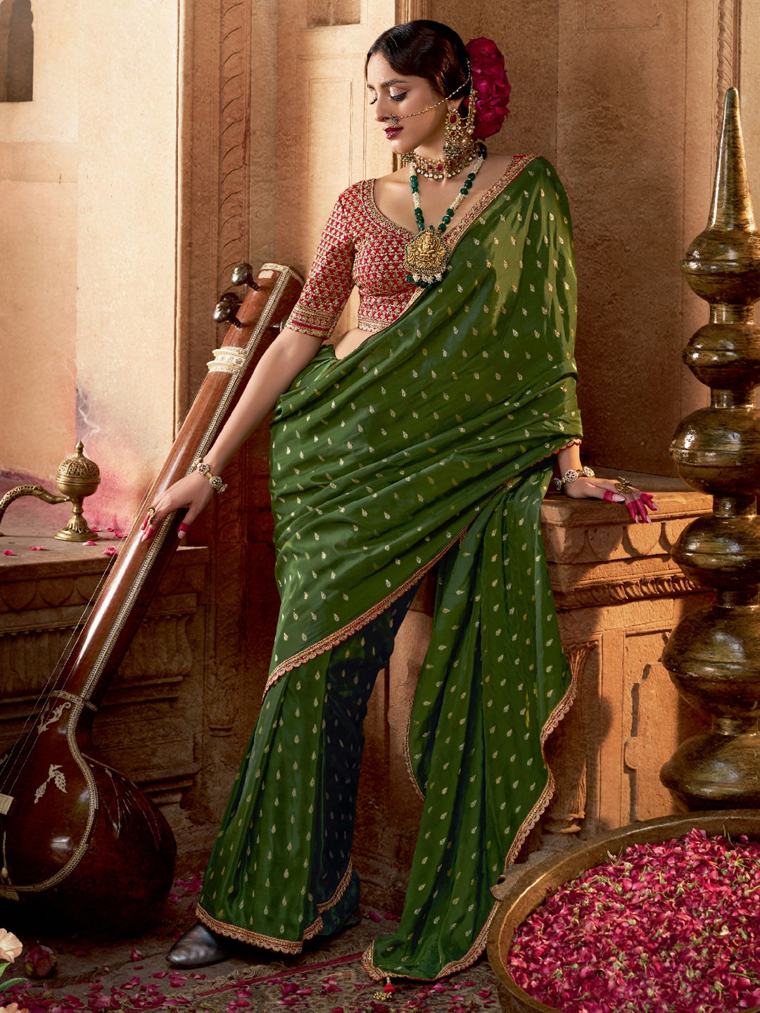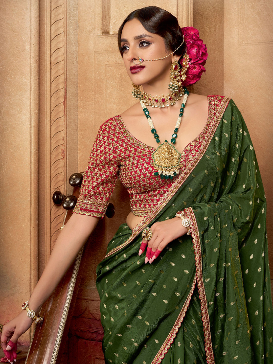 in Green with Lace work