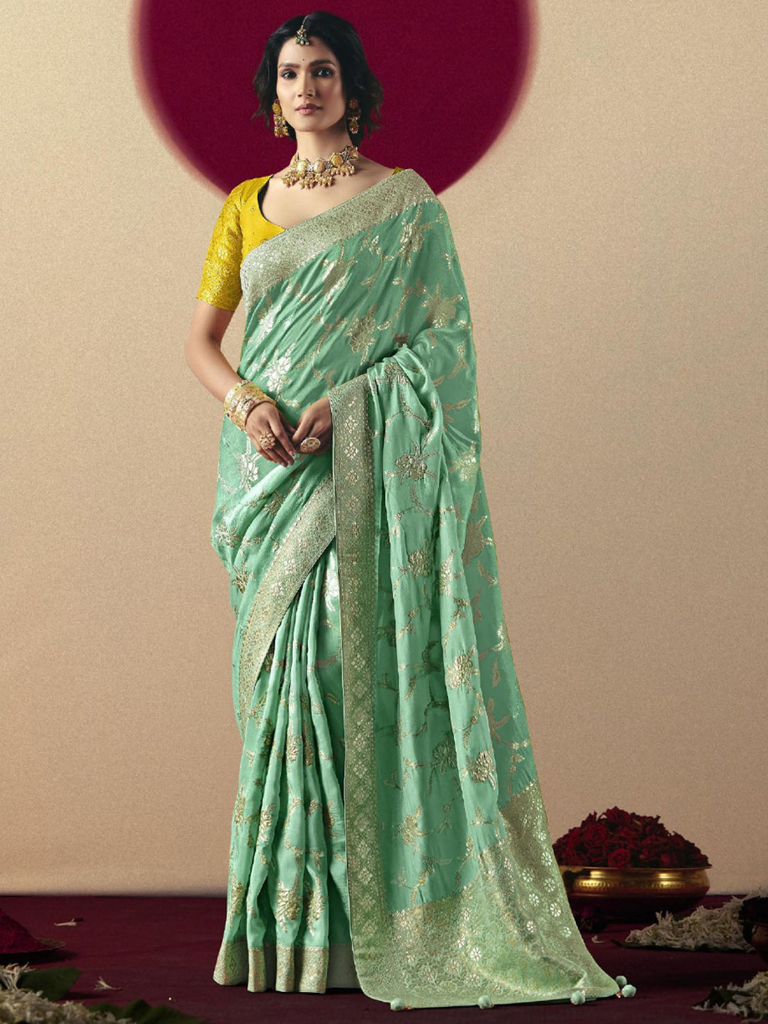 Viscose Party Wear Saree in Pink and Majenta with Weaving work