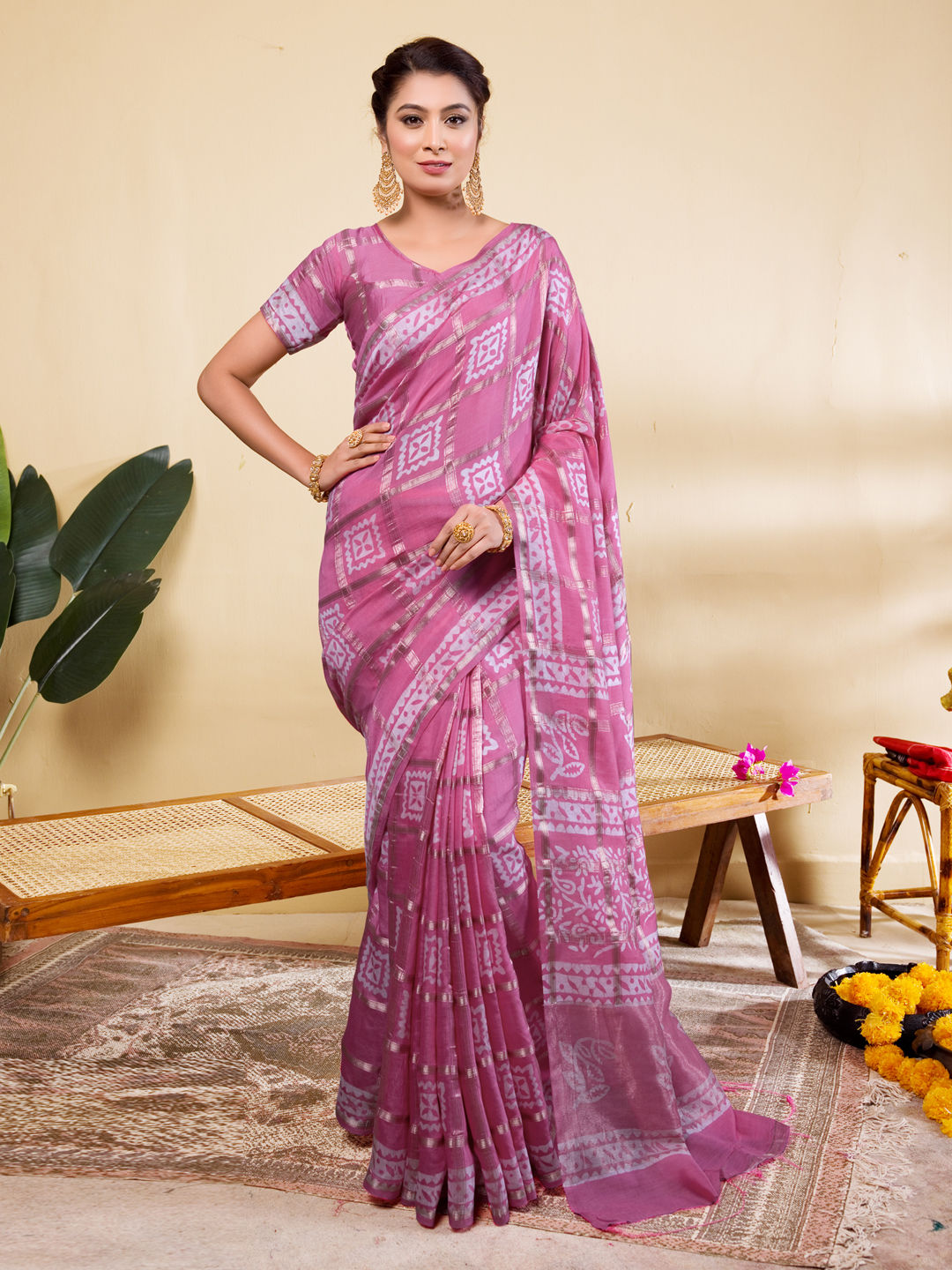 Viscose Festive Saree in Pink and Majenta with Bandhej work