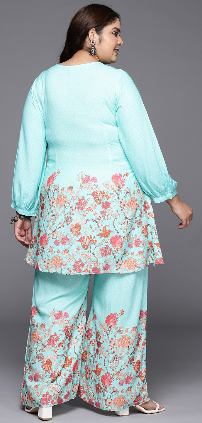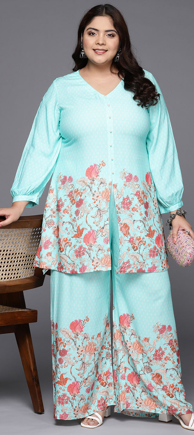Blue color Co-ords Set in Rayon, Viscose fabric with Foil Print, Printed work
