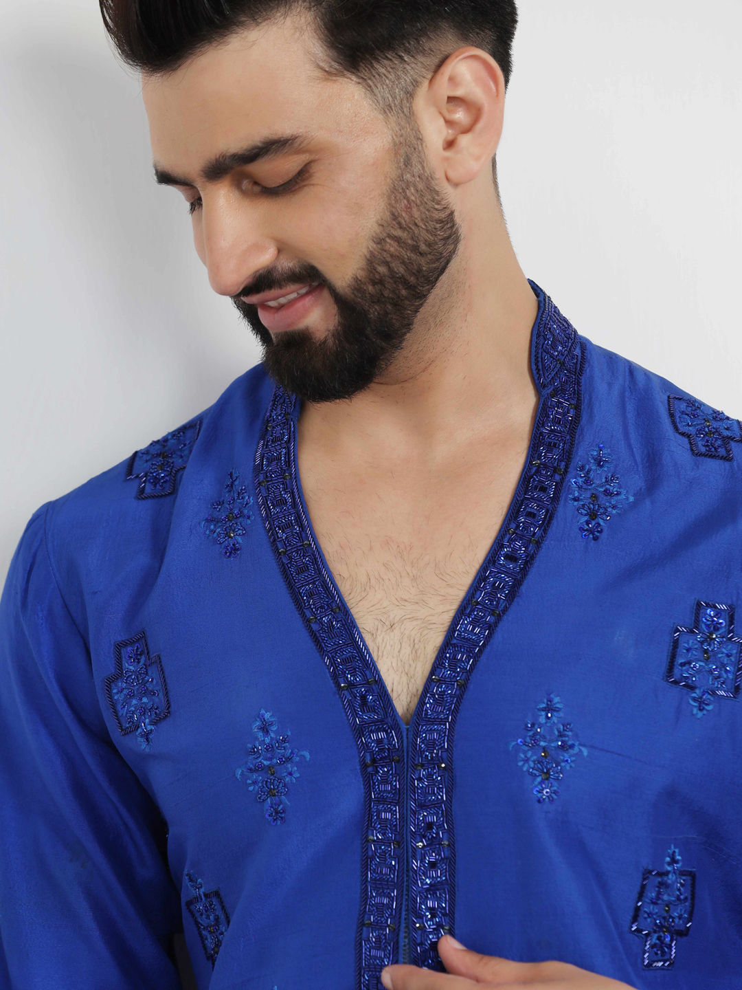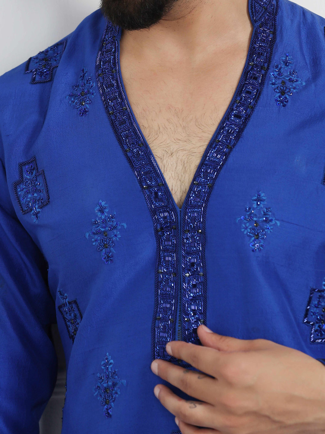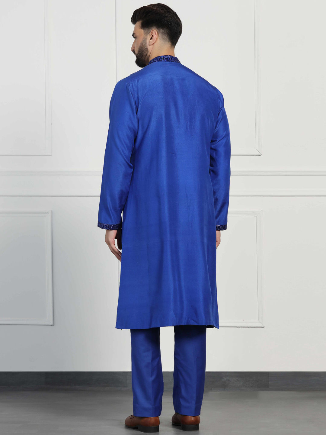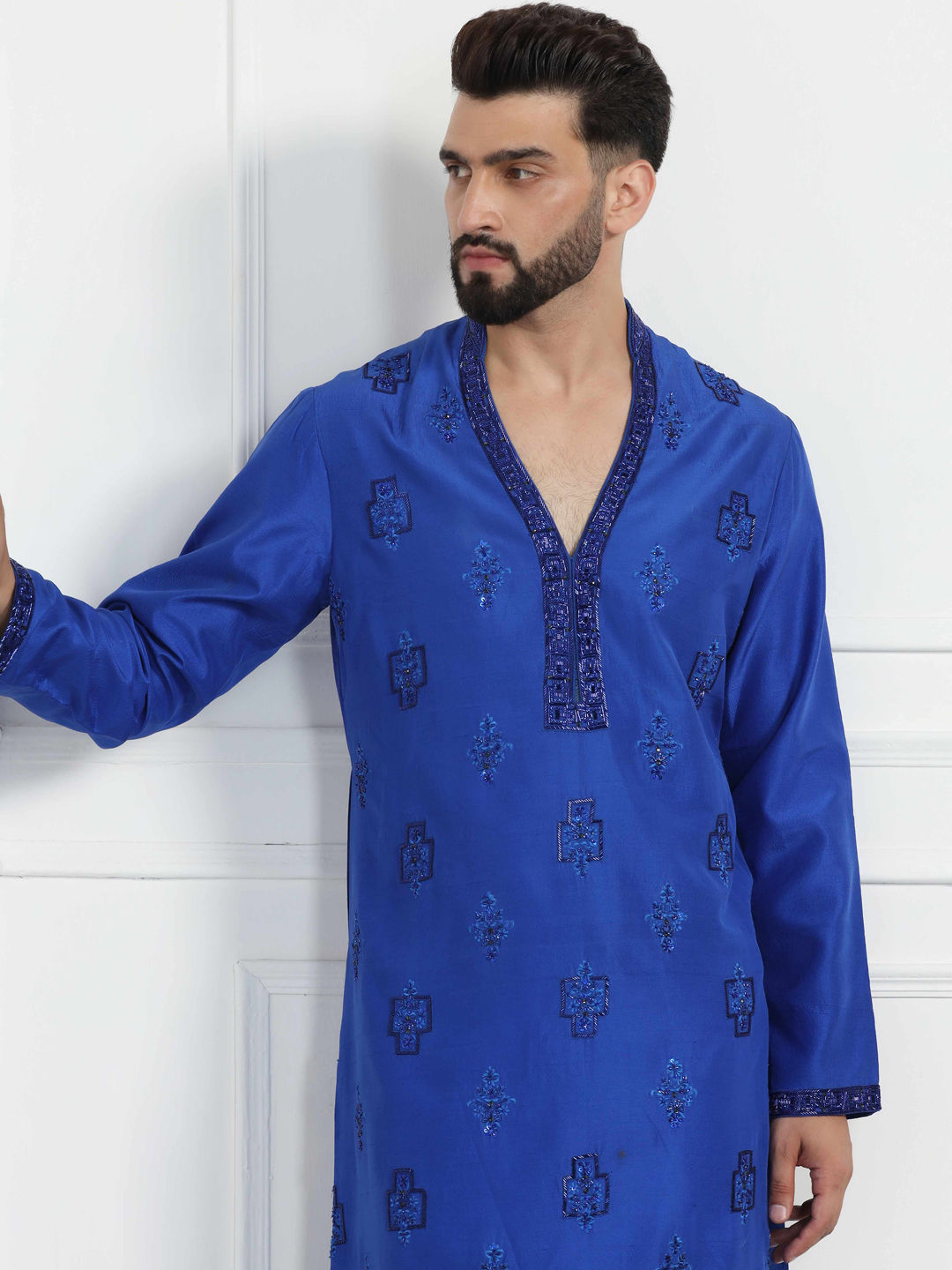 Blue color Kurta Pyjamas in Viscose fabric with Dabka, Embroidered, Resham, Thread work