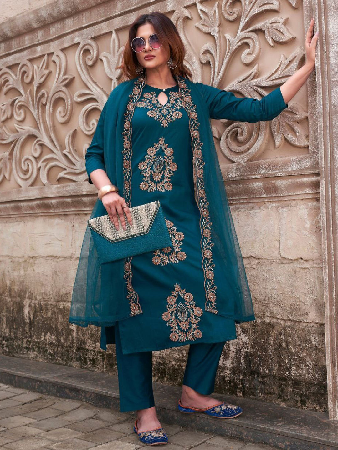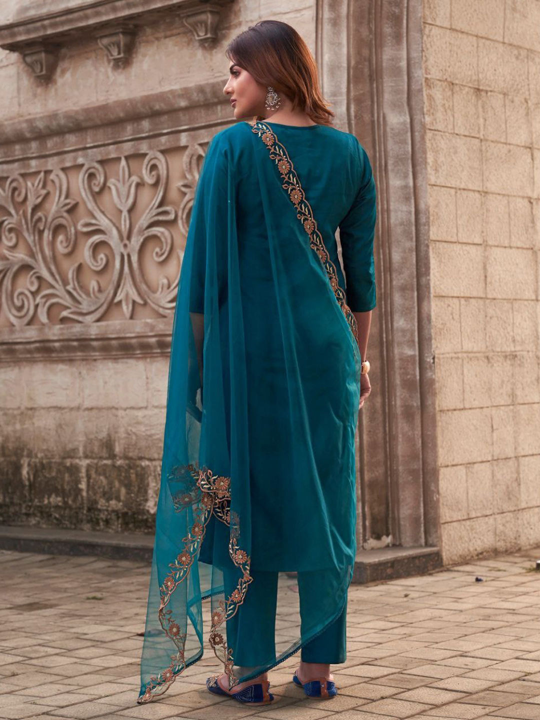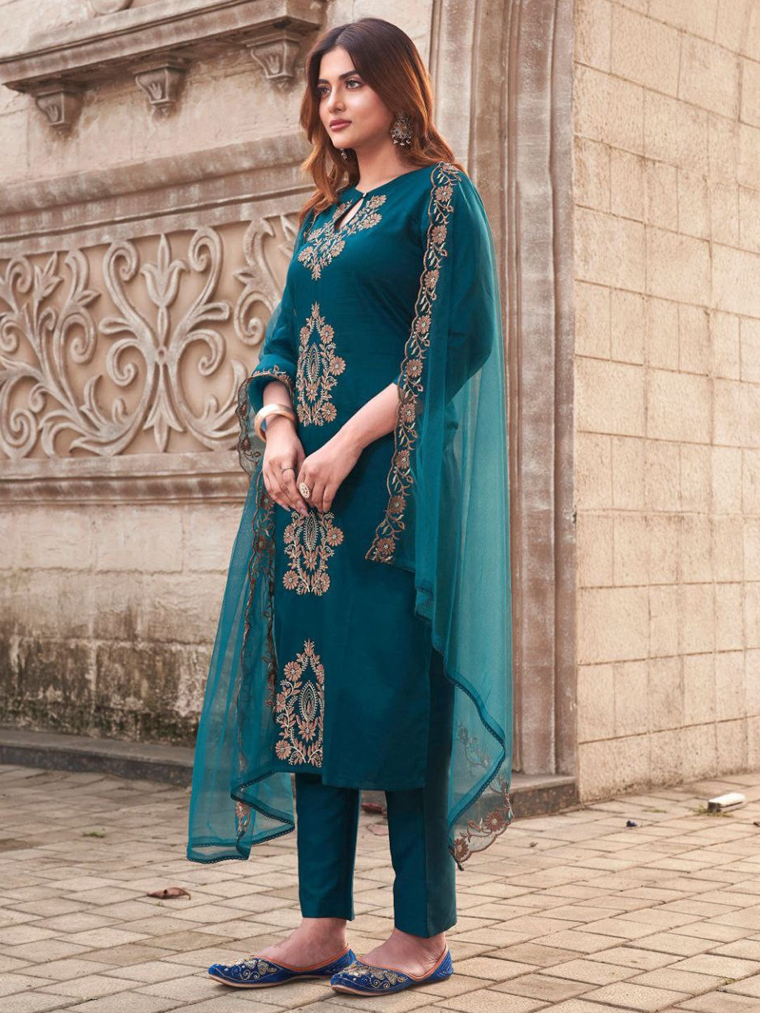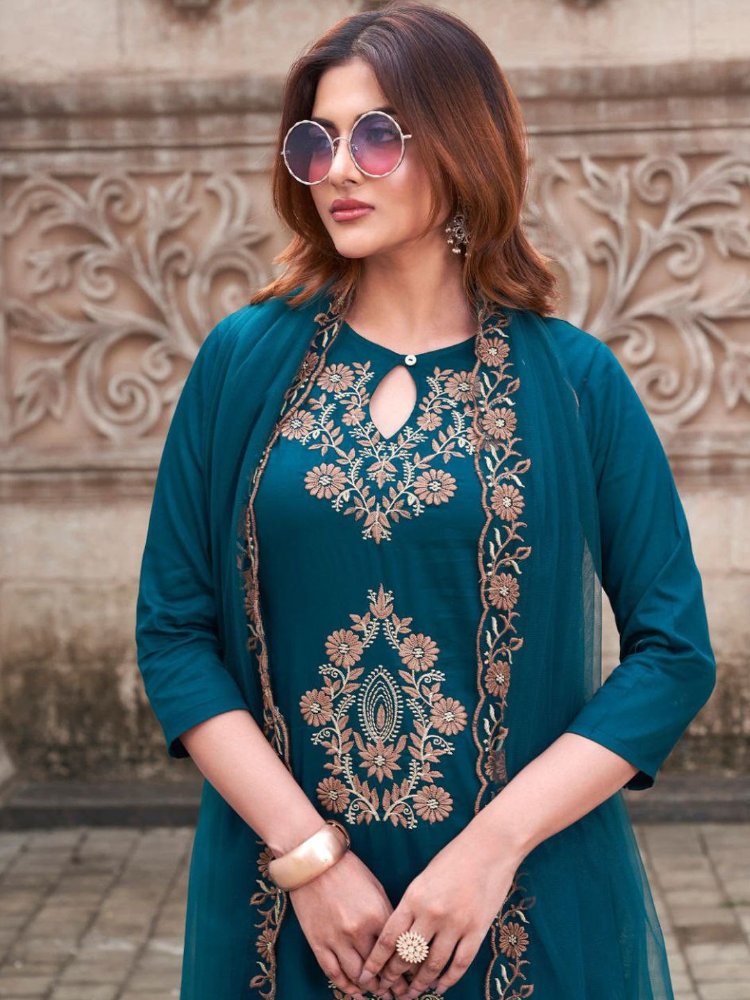 Blue color Salwar Kameez in Rayon, Viscose fabric with Embroidered, Resham, Sequence work
