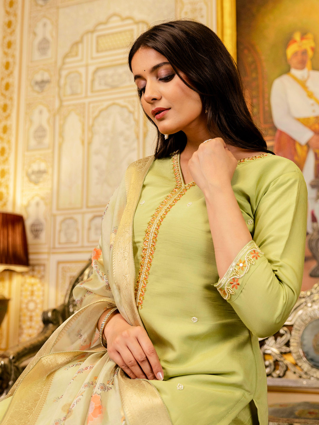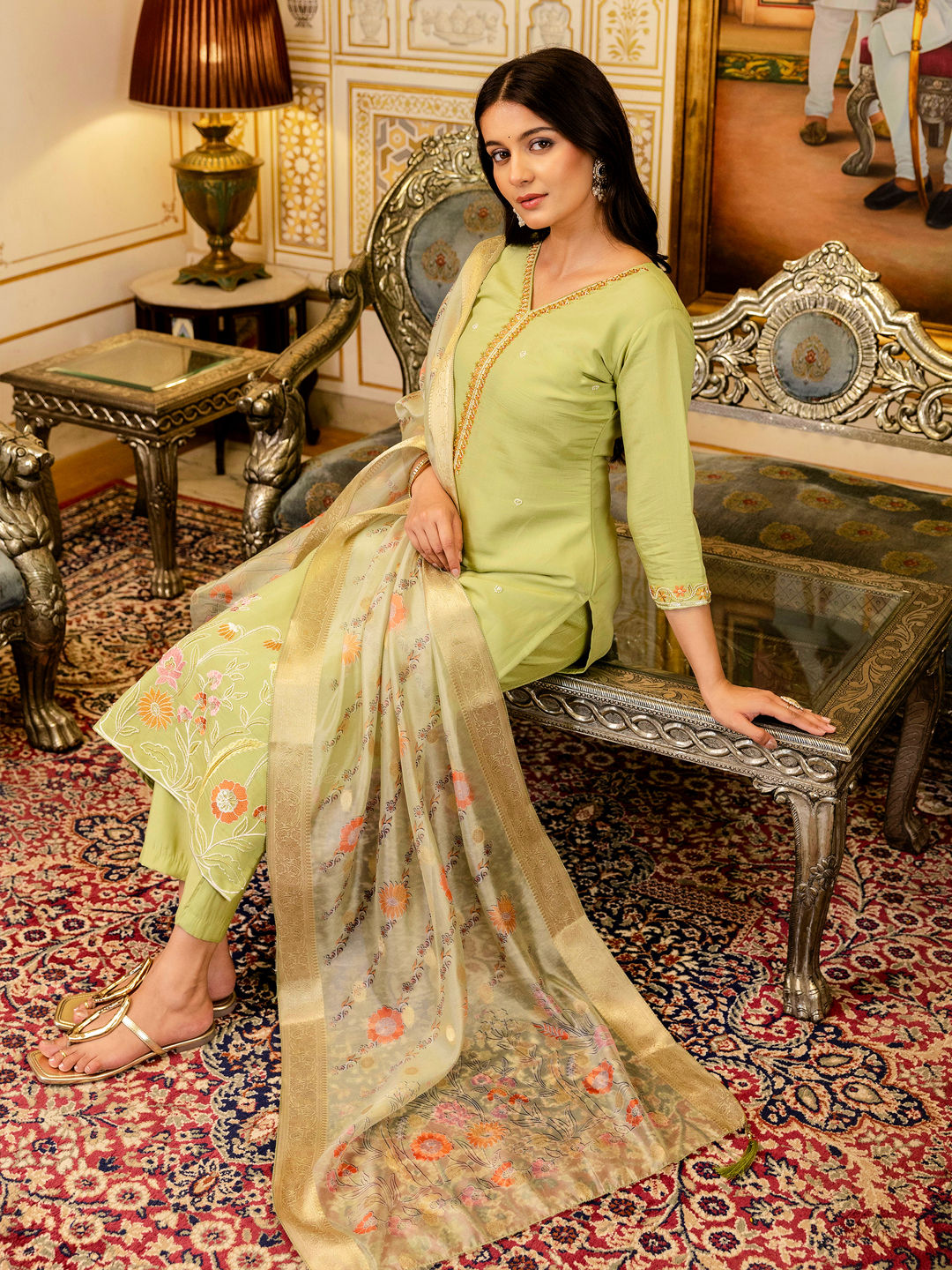 Green color Salwar Kameez in Shimmer, Viscose fabric with Embroidered, Resham, Sequence, Thread work