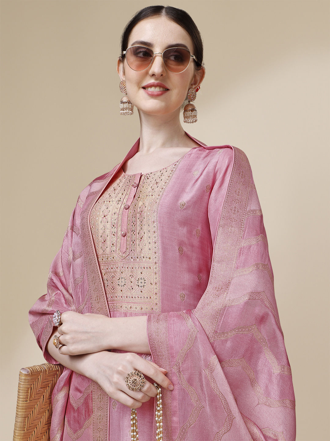 Pink and Majenta color Salwar Kameez in Viscose fabric with Bugle Beads, Sequence, Weaving work