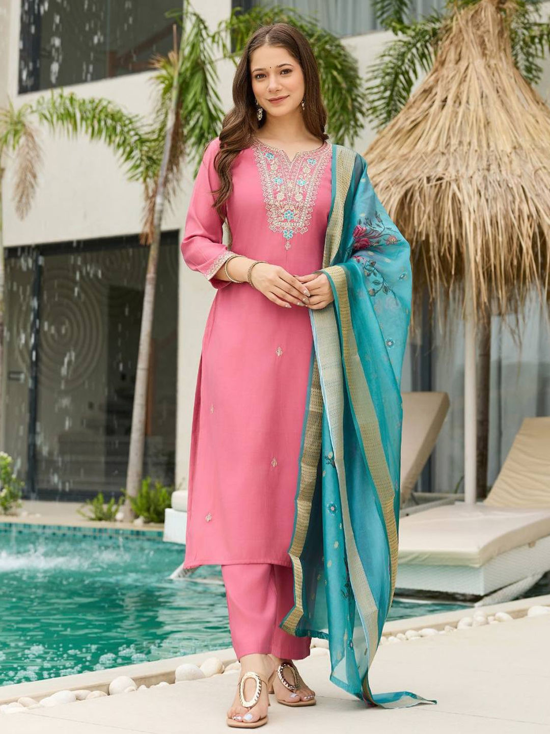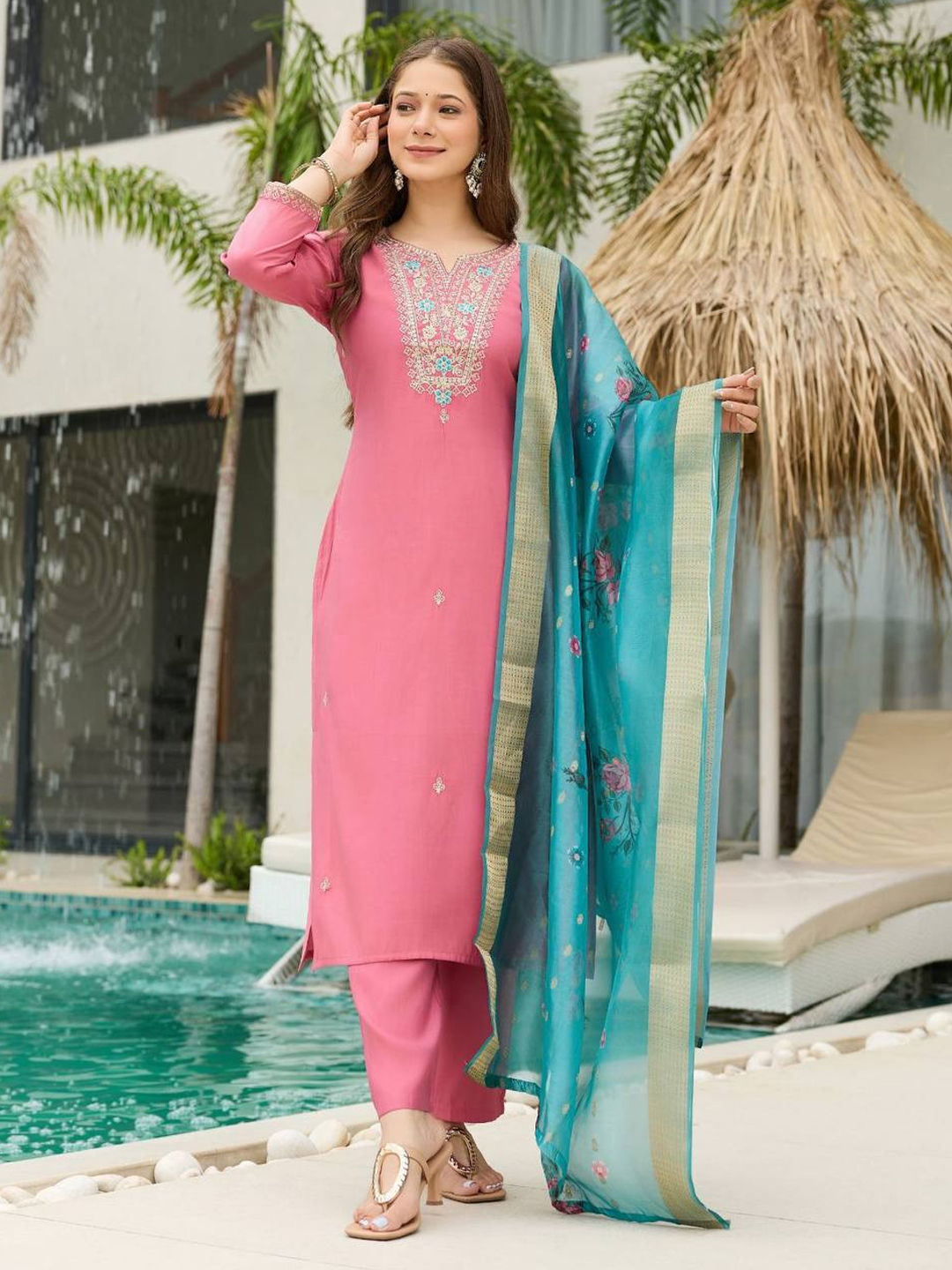 Pink and Majenta color Salwar Kameez in Viscose fabric with Embroidered, Sequence work
