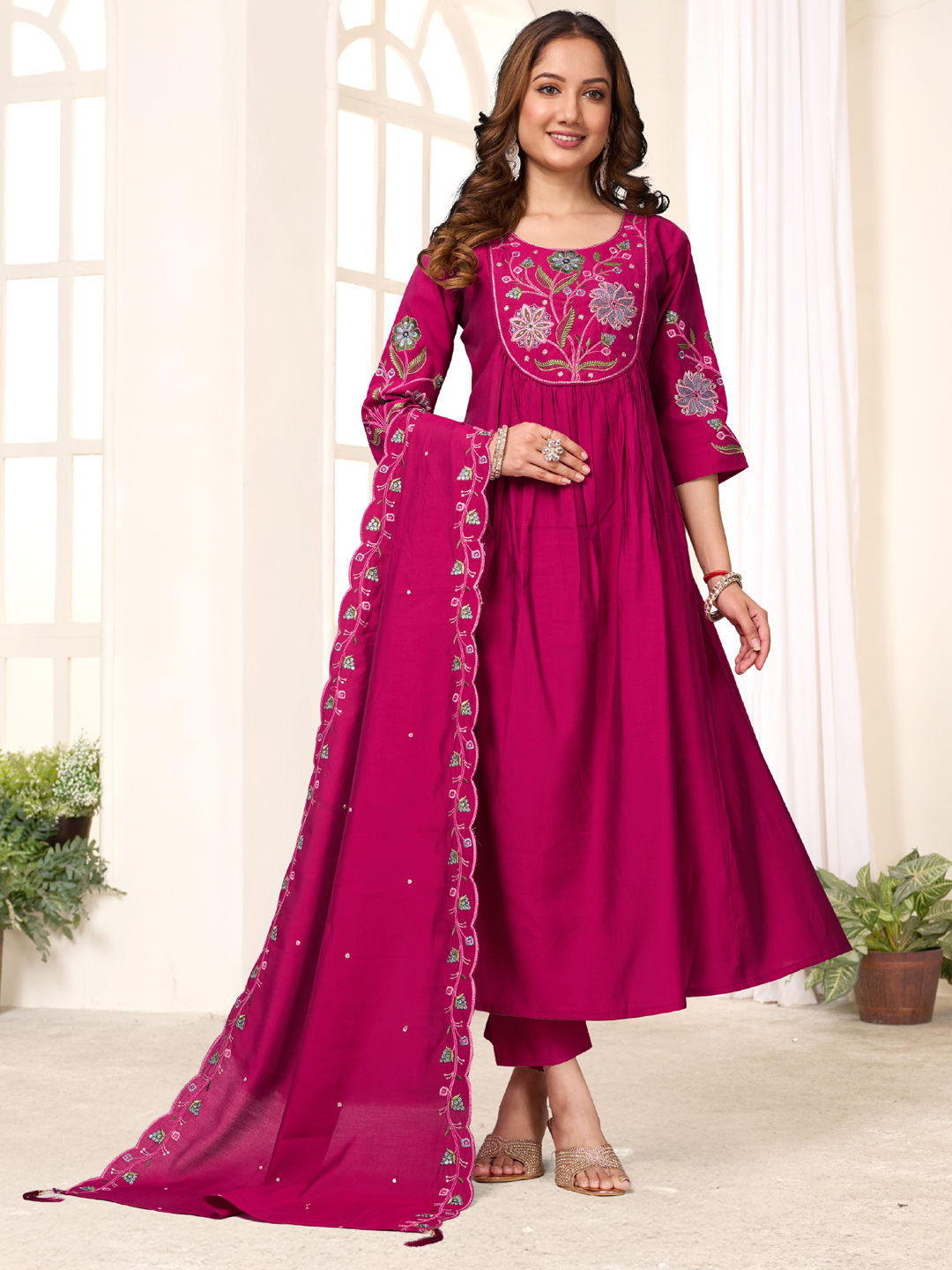 Pink and Majenta color Salwar Kameez in Roman Silk, Viscose fabric with Embroidered, Sequence work